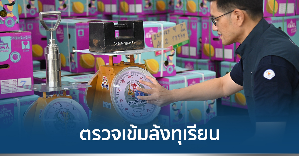 ร้อยตรี จักรา ยอดมณี รองอธิบดีกรมการค้าภายใน เปิดเผยภายหลังนำเจ้าหน้าที่สำนักงานพาณิชย์จังหวัดจันทบุรี และสำนักงานสาขาชั่งตวงวัดเขต 4-2 (จันทบุรี) ลงพื้นที่ตรวจสอบเครื่องชั่งที่ใช้ในการับซื้อทุเรียน ณ ล้งรับซื้อทุเรียนบริษัท เป่าเหิงซานเหอ จำกัด และแผงทุเรียนธรรมสรณ์ 789 อ.ท่าใหม่ จ.จันทบุรี ว่าได้สั่งการให้สำนักงานสาขาชั่งตวงวัดในเขตพื้นที่ภาคตะวันออกระดมกำลังเจ้าหน้าที่ตรวจสอบเครื่องชั่งรถยนต์ เครื่องชั่งสปริง และเครื่องชั่งดิจิทัล ที่ใช้ในการรับซื้อผลไม้ตั้งแต่เดือนมีนาคมเป็นต้นมา ก่อนที่ผลผลิตจะออกสู่ตลาดมากในช่วงเดือนเมษายน-พฤษภาคม เพื่อรักษาความเป็นธรรมให้แก่เกษตรกรในการขายผลผลิต นอกเหนือจากการรักษาระดับราคาให้อยู่ในเกณฑ์ที่ดีในขณะนี้ ทั้งนี้ ตามนโยบายของรองนายกรัฐมนตรีและรัฐมนตรีว่าการกระทรวงพาณิชย์ (นายภูมิธรรม เวชยชัย)