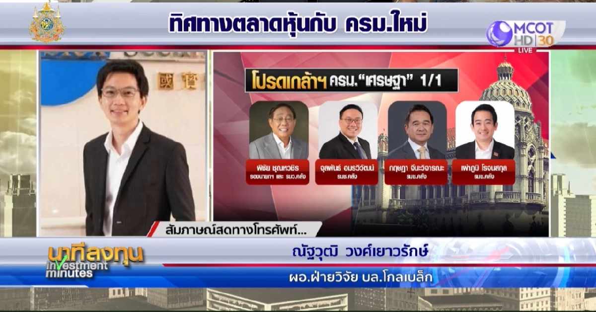 นายณัฐวุฒิ วงศ์เยาวลักษณ์ ผอ.ฝ่ายวิจัย บล.โกลเบล็ก ให้สัมภาษณ์ในรายการนาทีลงทุน ช่อง 9MCOT HD ถึงการปรับ ครม.เศรษฐา 1/1 โดย นายพิชัย ชุณหวชิร รับตำแหน่งรองนายกรัฐมนตรี และรัฐมนตรีว่าการกระทรวงการคลัง นั้น มองว่าสำหรับผู้ที่มารับการรับตำแหน่ง รมว.คลัง ในครั้งนี้ มีความท้าทายอยู่ 3 เรื่อง ได้แก่ การจัดหาเงินโครงการเติมเงิน 10,000 บาท ผ่าน Digital Wallet ปัญหาหนี้ครัวเรือนที่ทรงตัวในระดับสูง และปัญหาภาษีสรรพสามิตน้ำมันดีเซลที่จะต้องจัดหาเงินเพิ่มเติม ทั้งนี้ นายพิชัย เป็นผู้มีประสบการณ์และเชี่ยวชาญในการทำงานมานาน และยังเป็นผู้แปรรูป ปตท.จากรัฐวิสหกิจ มาเป็นบริษัทจดทะเบียน ทำให้หลายฝ่ายมองว่ามีความหวังที่จะสามารถเข้ามาคลี่คลายทั้ง 3 เรื่อง ไปในทิศทางที่ดี และเป็น sentiment เชิงบวกต่อตลาดหุ้นในวันนี้