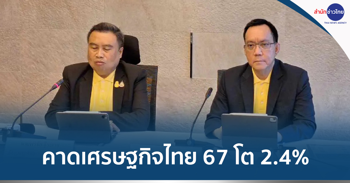 นายพรชัย ฐีระเวช ผู้อำนวยการสำนักงานเศรษฐกิจการคลัง ในฐานะโฆษกกระทรวงการคลัง แถลงผลการประมาณการเศรษฐกิจไทยปี 2567 ว่า เศรษฐกิจไทยในปี 2567 คาดว่าจะขยายตัวที่ร้อยละ 2.4 (ช่วงคาดการณ์ที่ร้อยละ 1.9 ถึง 2.9) ขยายตัวจากปี 2566 ที่ขยายร้อยละ 1.9” โดยได้รับแรงสนับสนุนจากภาคการท่องเที่ยวที่ขยายตัวต่อเนื่องเป็นสำคัญ รวมถึงบทบาทสนับสนุนของนโยบายการคลังในช่วงที่เหลือของปี ทั้งนี้ คาดว่าภาคการท่องเที่ยวในปี 2567 จะมีนักท่องเที่ยวชาวต่างประเทศเดินทางเข้ามาในประเทศไทยจำนวน 35.7 ล้านคน ขยายตัวสูงที่ร้อยละ 26.7 ต่อปี ส่งผลดีต่อภาคการท่องเที่ยวและธุรกิจบริการที่เกี่ยวข้อง เกิดการจ้างงานและเพิ่มรายได้ประชาชน ส่งผลดีต่อความเชื่อมั่นของภาคธุรกิจ ทำให้คาดว่าการลงทุนภาคเอกชนจะขยายตัวที่ร้อยละ 3.7 ต่อปี (ช่วงคาดการณ์ที่ร้อยละ 3.2 ถึง 4.2) ขณะที่การบริโภคภาคเอกชนจะขยายตัวได้ต่อเนื่องที่ร้อยละ 3.5 ต่อปี (ช่วงคาดการณ์ที่ร้อยละ 3.0 ถึง 4.0) สำหรับการส่งออกสินค้าจะขยายตัวที่ร้อยละ 2.3 ต่อปี (ช่วงคาดการณ์ที่ร้อยละ 1.8 ถึง 2.8) โดยคาดว่าการส่งออกสินค้าจะสามารถกลับมาฟื้นตัวได้ในช่วงครึ่งปีหลัง และมูลค่าการนำเข้าสินค้าจะขยายตัวที่ร้อยละ 3.4 ต่อปี (ช่วงคาดการณ์ที่ร้อยละ 2.9 ถึง 3.9) โดยมีสินค้าทุนขยายตัวเพิ่มขึ้น สะท้อนถึงการลงทุนภาคเอกชนที่จะเพิ่มขึ้นในอนาคต