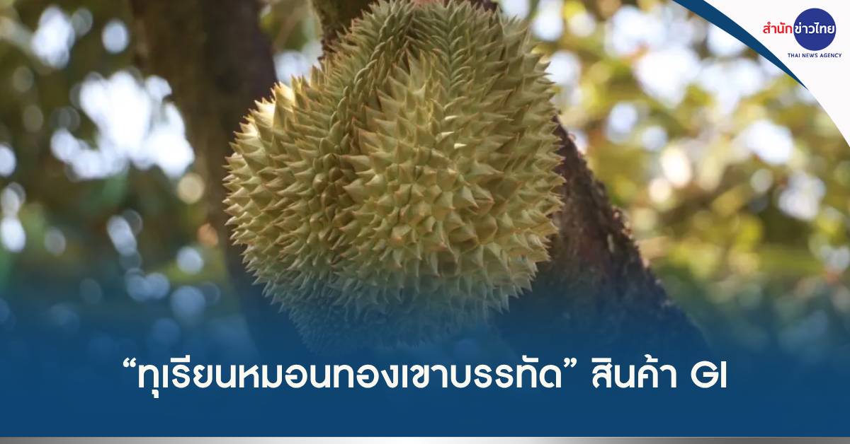 นนทบุรี 30 เม.ย.-อธิบดีกรมทรัพย์สินทางปัญญา ประกาศขึ้นทะเบียน “ทุเรียนหมอนทองเขาบรรทัด” สินค้า GI รายการใหม่ ประจำจังหวัดตราด เนื้อสีเหลืองอ่อน รสชาติหวาน มัน เป็นที่รู้จักของนักท่องเที่ยวและผู้บริโภคสร้างรายได้ให้เกษตรกรอย่างยั่งยืน
