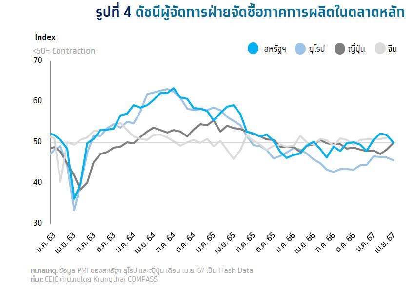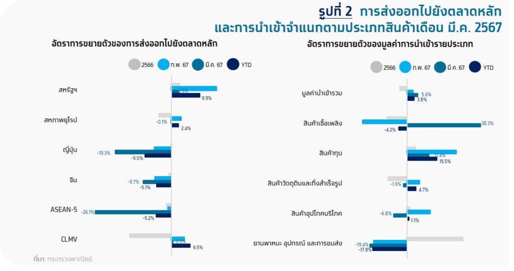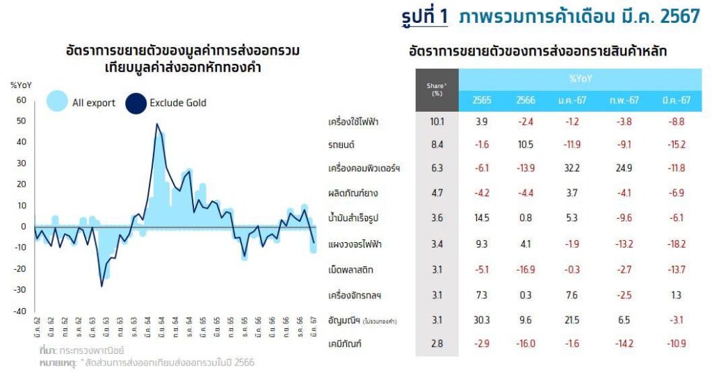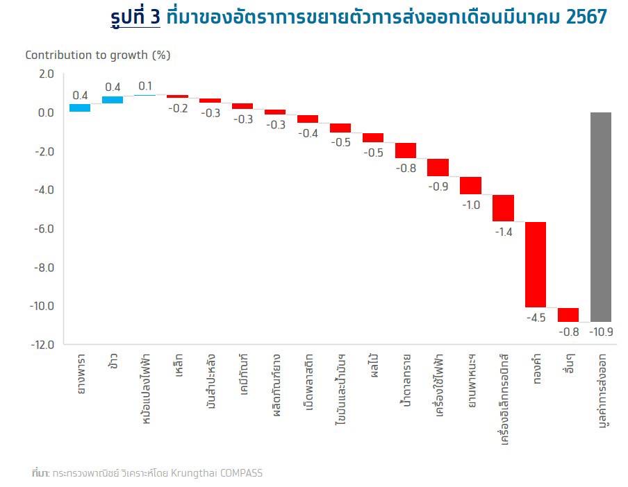 กรุงเทพฯ 30 เม.ย.-Krungthai COMPASS เผยมูลค่าส่งออกเดือนมีนาคม 2567 พลิกกลับมาหดตัว 10.9% ครั้งแรกในรอบ 8 เดือน การส่งออกทั้งปียังมีแนวโน้มขยายตัวได้ 1.8%