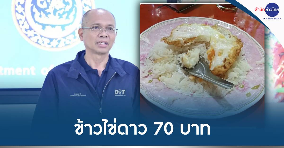 นนทบุรี 2 พ.ค.-รองอธิบดีกรมการค้าภายใน ให้พาณิชย์จังหวัดลงพื้นที่ตรวจร้านอาหารตามสั่ง กรณีเป็นข่าวคิดราคาข้าวไข่ดาวจานละ 70 บาท เบื้องต้นถือว่าแพงเกินจริงและไม่ปิดป้ายแสดงราคาให้ชัดเจน รอผลตรวจผิดถูกดำเนินคดีทางกฎหมาย แนะประชาชนหากพบเห็นร้านค้าเอาเปรียบแจ้งสายด่วน 1569