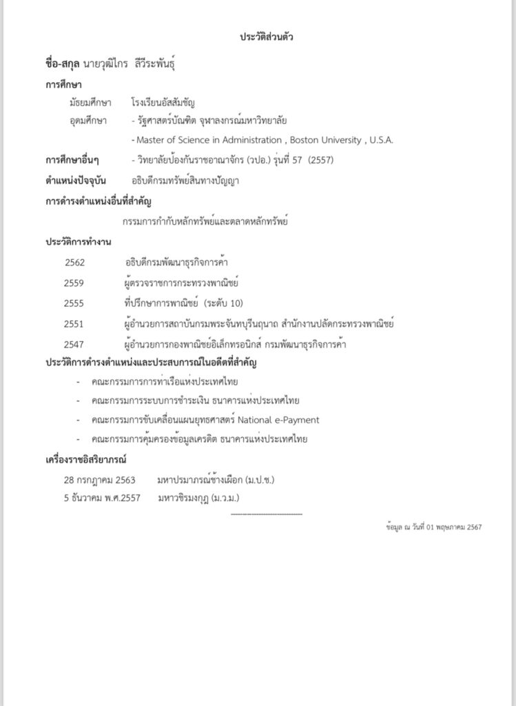 ที่ปรึกษาการพาณิชย์ สํานักงานปลัดกระทรวงพาณิชย์ ปี 2556) ผู้ตรวจราชการกระทรวง สํานักงานปลัดกระทรวงพาณิชย์ ปี2560 อธิบดีกรมพัฒนาธุรกิจการค้า 1 ต.ค. 2561- 30 ก.ย. 2563 และอธิบดีกรมทรัพย์สินทางปัญญา 1 ต.ค. 2563 – ปัจจุบัน .-515-สำนักข่าวไทย