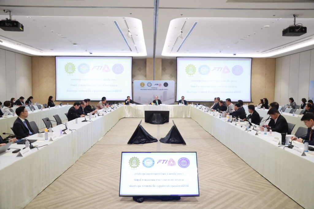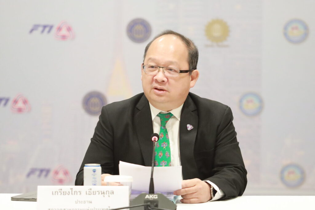 นายเกรียงไกร เธียรนุกุล ประธานสภาอุตสาหกรรมแห่งประเทศไทย (ส.อ.ท.) ในฐานะประธานการประชุมคณะกรรมการร่วมภาคเอกชน 3 สถาบัน (กกร.) แถลงผลการประชุม กกร.ประจำเดือนพฤษภาคม 2567 โดยมี ดร.พจน์ อร่ามวัฒนานนท์ รองประธานกรรมการ สภาหอการค้าแห่งประเทศไทย และนายกอบศักดิ์ ดวงดี เลขาธิการ สมาคมธนาคารไทย ร่วมแถลงข่าว