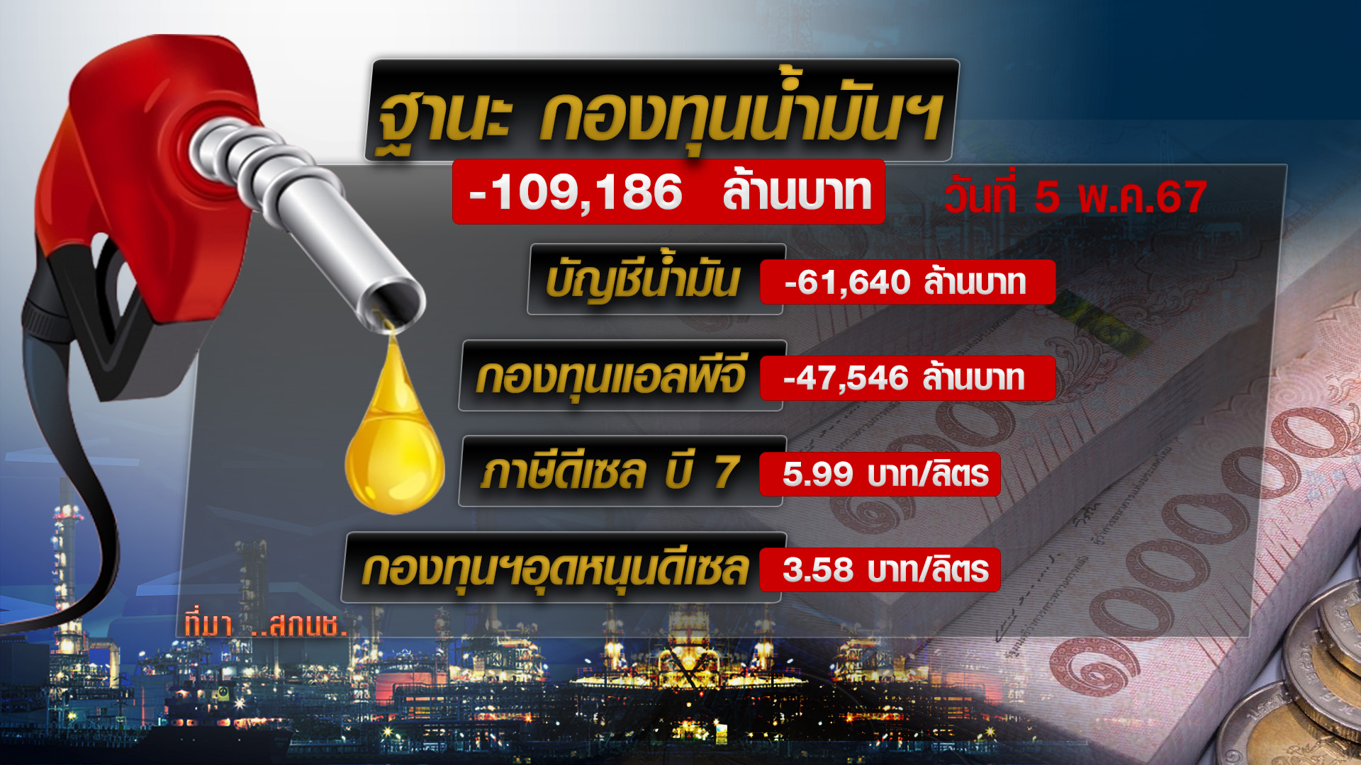 อย่างไรก็ดี กบน.จะพิจารณาลดการชดเชยราคาน้ำมันดีเซลแบบค่อยเป็นค่อยไปให้เป็นไปตามช่วงเวลาและจังหวะที่เหมาะสม เพื่อรักษาระดับราคาขายปลีกน้ำมันภายในประเทศไม่ให้ผันผวนมากจนเกินไป และกระทบต่อค่าครองชีพของประชาชนให้น้อยที่สุด สำหรับฐานะกองทุนน้ำมันเชื้อเพลิงสุทธิ ณ วันที่ 5 พฤษภาคม 2567 ติดลบ 109,186 ล้านบาท แบ่งเป็นบัญชีน้ำมันติดลบ 61,640 ล้านบาท ส่วนก๊าซ LPG ติดลบ 47,546 ล้านบาท