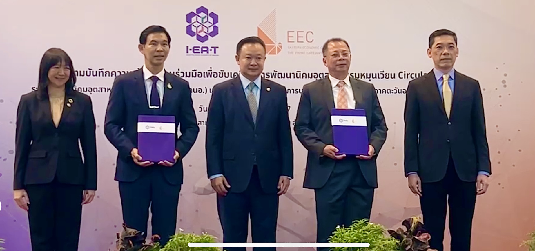 กรุงเทพฯ 15 พ.ค.-การนิคมอุตสาหกรรมแห่งประเทศไทย (กนอ.) ลงนามบันทึกความเข้าใจ กับ สำนักงานคณะกรรมการนโยบายเขตพัฒนาพิเศษภาคตะวันออก (สกพอ.) ขับเคลื่อนการพัฒนานิคมอุตสาหกรรม Circular แห่งแรกในประเทศไทย ภายใต้แนวคิดการพัฒนาที่ยั่งยืนและเป็นมิตรต่อสิ่งแวดล้อม