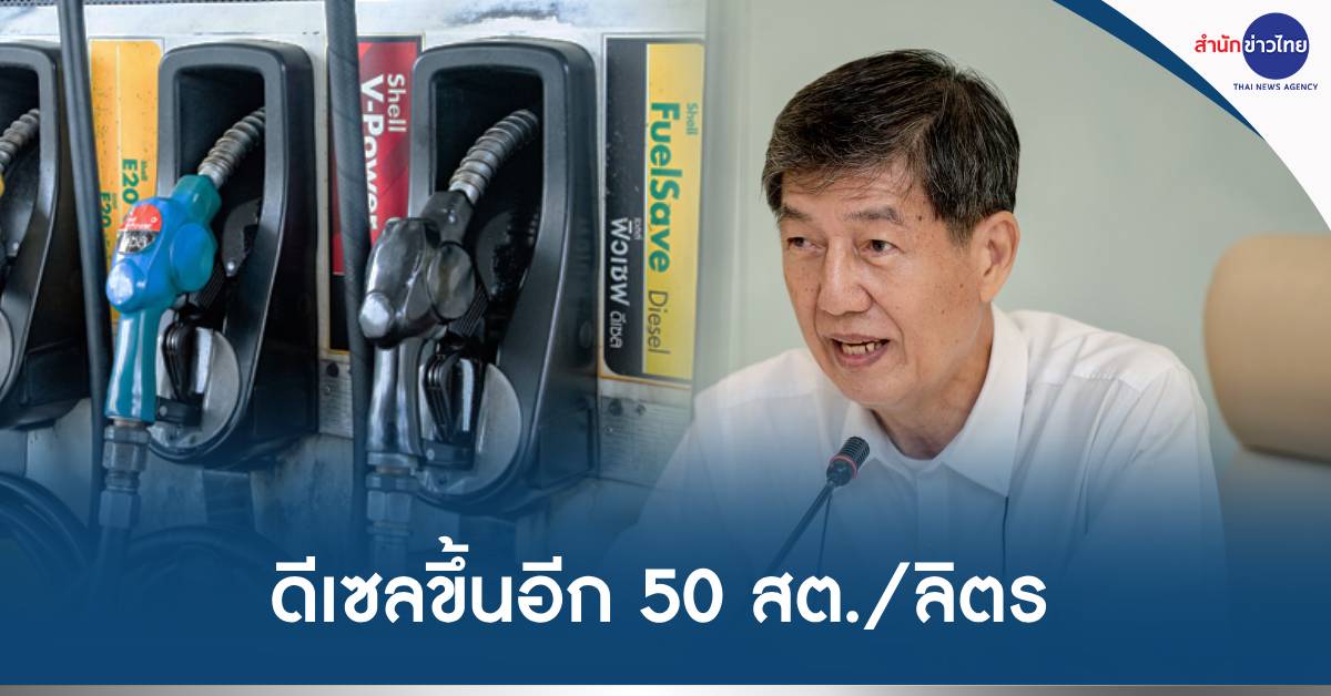 กรุงเทพฯ 24 พ.ค.-สิงห์ดีเซลแวะปั๊มด่วน! ราคาดีเซลขยับขึ้นอีก 50 สตางค์/ลิตร พรุ่งนี้ (25 พ.ค.) สวนทางราคาน้ำมันดิบตลาดโลกที่ลดลง เหตุผล กบน. เห็นควรเสริมสภาพคล่องกองทุนน้ำมันฯ ลดชดเชยราคาดีเซล ขยับราคาอยู่ในกรอบมติ ครม.ไม่เกิน 33 บาท หลังอุดหนุนหนัก กองทุนฯ ติดลบแสนล้านบาท
