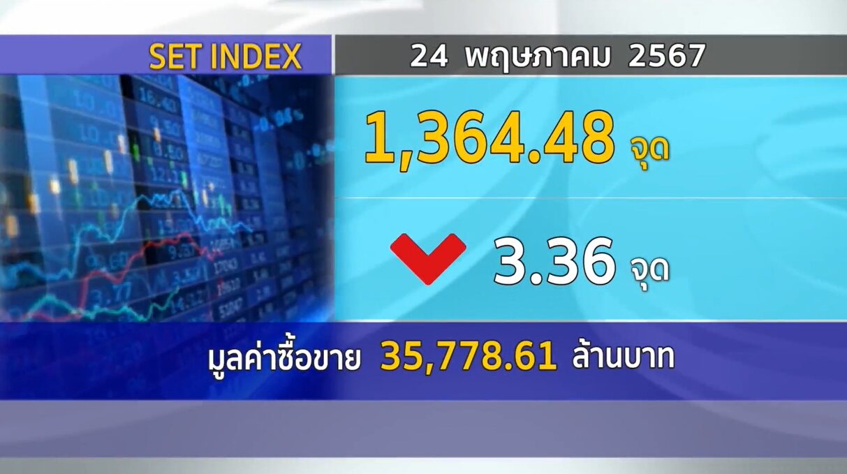 กทม. 24 พ.ค.-SET ปิดวันนี้ที่ 1,364.48 จุด ลดลง 3.36 จุด (-0.25%) มูลค่าซื้อขาย 35,858.38 ล้านบาท