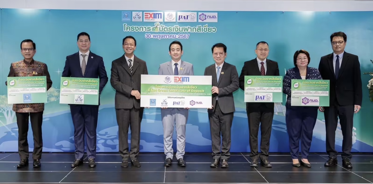 สำหรับโครงการบัตรเงินฝากสีเขียวของ EXIM BANK เป็นการบูรณาการความร่วมมือของภาครัฐและเอกชนในการพัฒนาเครื่องมือทางการเงินสีเขียว เพื่อร่วมกันเปลี่ยนผ่านประเทศไทยไปสู่เศรษฐกิจและสังคมคาร์บอนต่ำ บรรลุเป้าหมายของประเทศไทยสู่ความเป็นกลางทางคาร์บอน ภายในปี 2593 และการปล่อยก๊าซเรือนกระจกสุทธิเป็นศูนย์ภายในปี 2608 โดยนับจากนี้เราจะเริ่มเห็นความสำเร็จของการสร้าง Green Export Supply Chain เป็นรูปธรรมมากขึ้นตั้งแต่ขั้นตอนการจัดหาเงินทุน วัตถุดิบ กระบวนการผลิต และส่งมอบสินค้า ตลอดจนโลจิสติกส์ที่ไม่ทำร้ายสิ่งแวดล้อม ใช้พลังงานสะอาดและสร้างระบบนิเวศเศรษฐกิจสีเขียวและยั่งยืนเพิ่มมากขึ้น