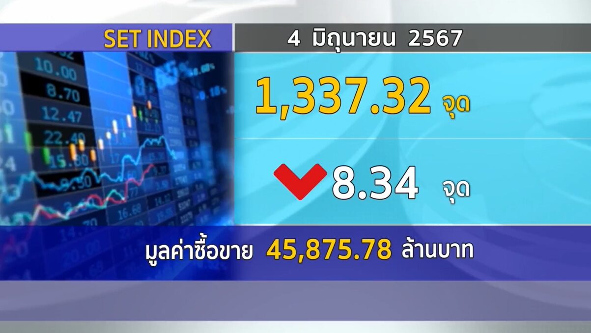 กทม. 4 มิ.ย.-SET ปิดวันนี้ที่ 1,337.32 จุด ลดลง 8.34 จุด (-0.62%) มูลค่าซื้อขาย 45,992.34 ล้านบาท