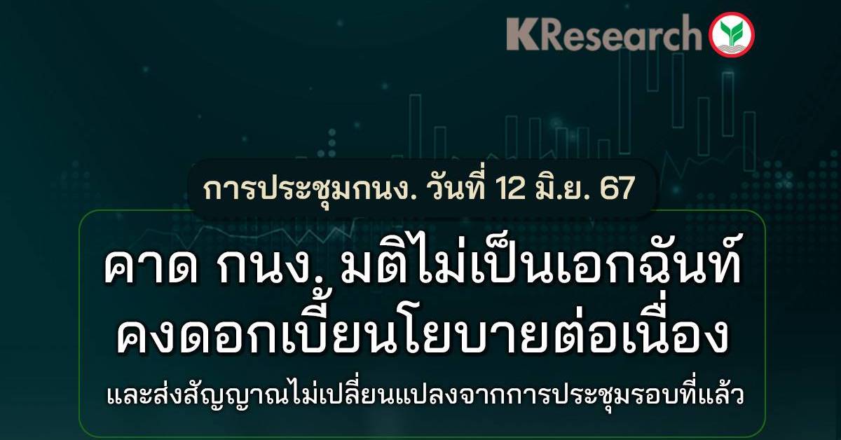 ศูนย์วิจัยกสิกรไทยมองว่า กนง. มีแนวโน้มที่จะตรึงดอกเบี้ยนโยบายที่ระดับ 2.50% ไปตลอดทั้งปีนี้ แม้ว่าผลสำรวจนักเศรษฐศาสตร์ล่าสุดส่วนใหญ่มองมีโอกาสที่ กนง. อาจปรับลดดอกเบี้ย 1 ครั้งในปีนี้ โดยศูนย์วิจัยกสิกรไทยมองว่า กนง. คงจะรอให้ธนาคารกลางสหรัฐฯ (เฟด) ปรับลดดอกเบี้ยนโยบายก่อน จากทิศทางเศรษฐกิจไทยที่มีแนวโน้มขยายตัวเร่งขึ้นในช่วงครึ่งปีหลังของปีนี้ ขณะที่เงินเฟ้อทั่วไปของไทยมีแนวโน้มกลับสู่เป้าหมายของ กนง. ที่ 1-3% ภายในสิ้นปีนี้ ประกอบกับแรงกดดันค่าเงินบาทอ่อนค่าจากแนวโน้มการคงดอกเบี้ยสูงยาวนานกว่าคาดของเฟด.-511.-สำนักข่าวไทย