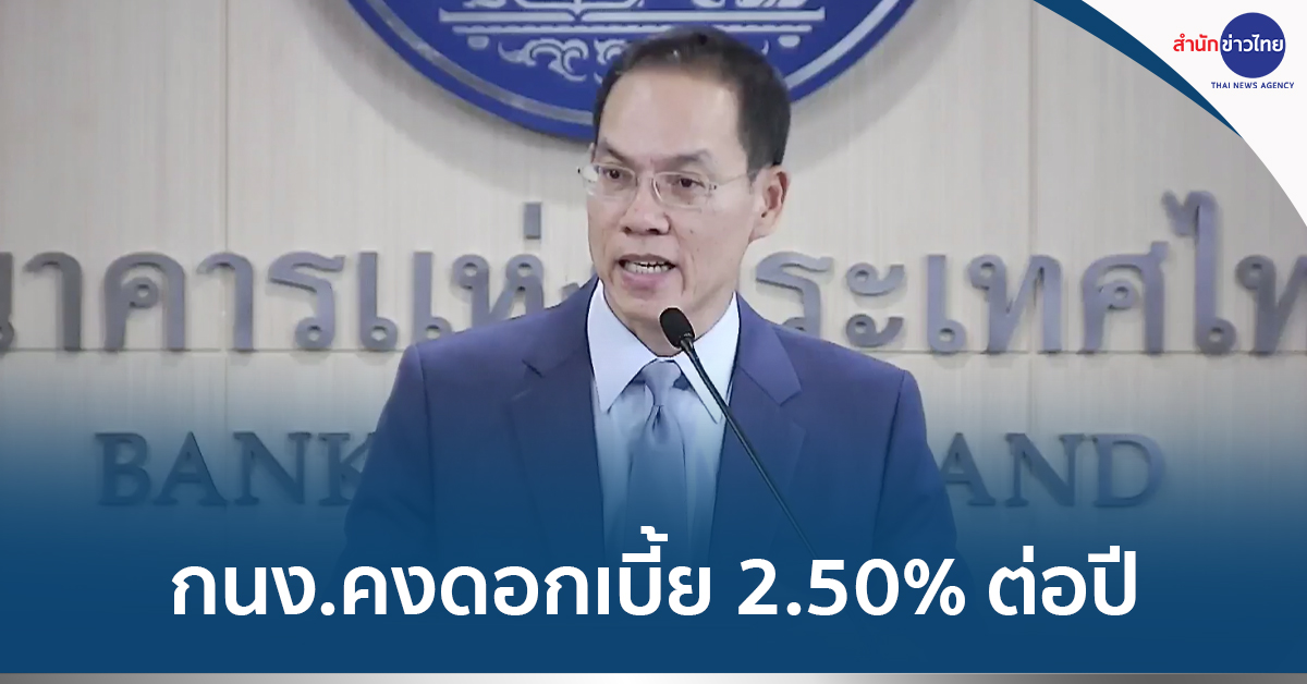 นายปิติ ดิษยทัต เลขานุการคณะกรรมการนโยบายการเงิน (กนง.) แถลงผลการประชุม กนง.ว่า คณะกรรมการฯ มีมติ 6 ต่อ 1 เสียง ให้คงอัตราดอกเบี้ยนโยบายไว้ที่ร้อยละ 2.50 ต่อปี โดย 1 เสียง เห็นควรให้ลดอัตราดอกเบี้ยนโยบายร้อยละ 0.25 ต่อปีเพื่อให้สอดคล้องกับศักยภาพทางเศรษฐกิจที่ขยายตัวต่ำลงจากปัจจัยเชิงโครงสร้างที่ชัดเจนขึ้น และจะมีส่วนช่วยบรรเทาภาระของลูกหนี้ได้บ้าง