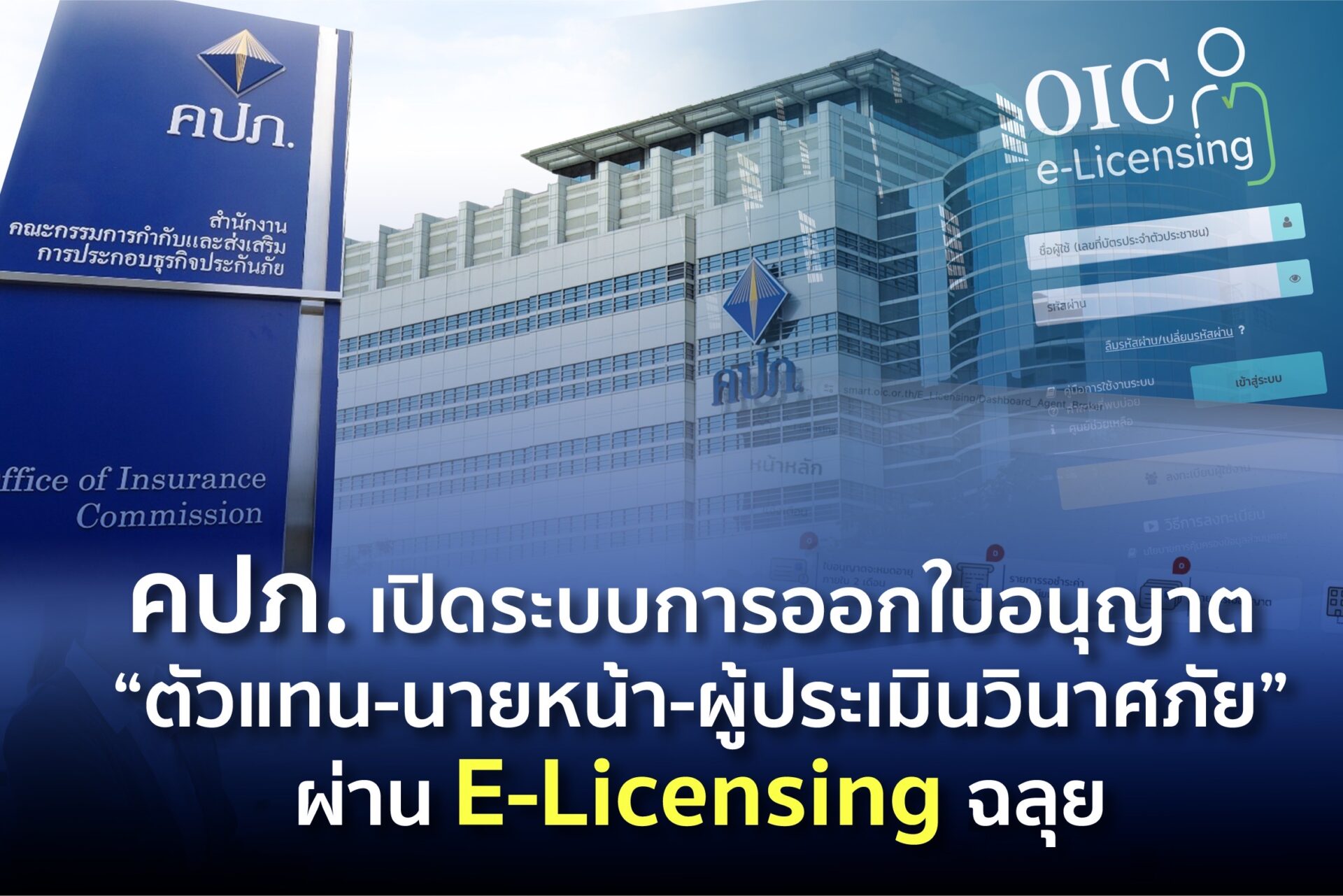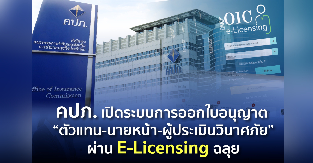 ปัจจุบันสำนักงาน คปภ. ได้เปิดใช้งานระบบ E-Licensing เรียบร้อยแล้ว ตั้งแต่วันที่ 2 มกราคม 2567 ในส่วนของวิธีการใช้งานและช่องทางการใช้งานผ่านระบบ E-Licensing ดังกล่าว คนกลางประกันภัย บริษัทประกันภัย และประชาชน สามารถศึกษารายละเอียดเพิ่มเติมจากคู่มือการใช้งานและคลิปวิดีโอแนะนำการใช้งานต่าง ๆ ตลอดจนเอกสารเผยแพร่ประชาสัมพันธ์ ได้ที่เว็บไซต์สำนักงาน คปภ. (www.oic.or.th) Facebook สำนักงาน คปภ. (oicthailand) Mobile Application (OIC คนกลาง For Sure) Line Official (@oicconnect) และสายด่วน คปภ. 1186.-515-สำนักข่าวไทย