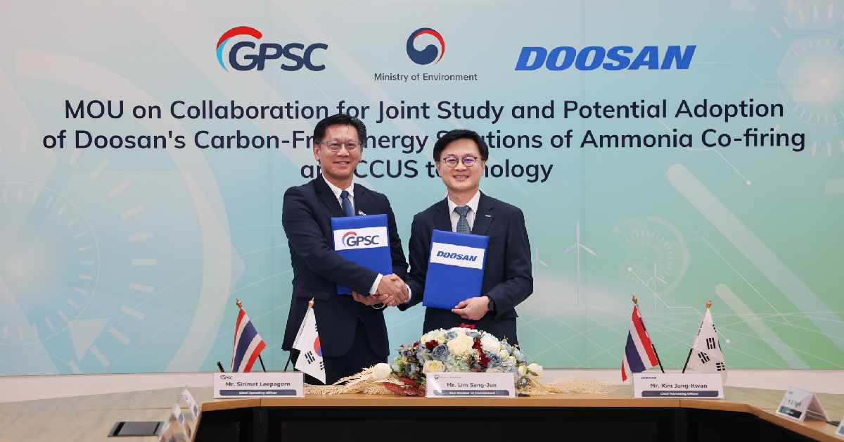 Mr. Jung-kwan Kim รองประธานบริหารและประธานเจ้าหน้าที่ฝ่ายการตลาดของ Doosan Enerbility กล่าวว่า การศึกษาร่วมกันในครั้งนี้ ได้นำเทคโนโลยีขั้นสูงของ Doosan Enerbility ซึ่งเป็นเทคโนโลยีที่นำแอมโมเนียมาเป็นเชื้อเพลิงผสมในการผลิตไฟฟ้าซึ่งได้รับการจดสิทธิบัตร และเทคโนโลยี CCUS ที่มีความเหมาะสมในการติดตั้งและเพิ่มประสิทธิภาพของโรงไฟฟ้าของ GPSC ในการดักจับคาร์บอนให้เป็นไปตามเป้าหมายการลดการปล่อยก๊าซเรือนกระจกสุทธิเป็นศูนย์ เพื่อสร้างความยั่งยืนให้กับธุรกิจของ GPSC