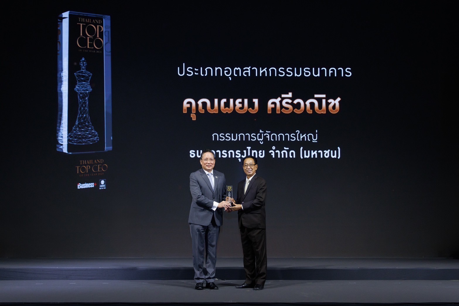 นายผยง ศรีวณิช กรรมการผู้จัดการใหญ่ ธนาคารกรุงไทย รับรางวัลสุดยอดผู้นำองค์กรแห่งปี THAILAND TOP CEO OF THE YEAR 2024 สาขาอุตสาหกรรมธนาคาร ต่อเนื่องเป็นปีที่ 2 จากนิตยสาร BUSINESS+ ซึ่งได้ร่วมกับคณะพาณิชยศาสตร์และการบัญชี มหาวิทยาลัยธรรมศาสตร์ มอบรางวัลอันทรงเกียรติ เพื่อเป็นเครื่องหมายแห่งความสำเร็จ ให้กับผู้บริหารสูงสุดของอค์กรที่มีผลงานโดดเด่น เป็นที่ประจักษ์ในแต่ละอุตสาหกรรม โดยมีนายนุรักษ์ มาประณีต องคมนตรี เป็นประธานมอบรางวัล เมื่อวันที่ 20 มิถุนายน 2567 ที่ผ่านมา