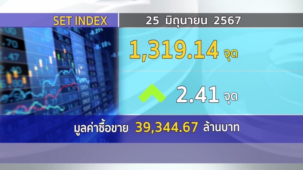 กทม. 25 มิ.ย.- SET ปิดวันนี้ที่ 1,319.14 จุด เพิ่มขึ้น 2.41 จุด (+0.18%) มูลค่าการซื้อขาย 39,401.76 ล้านบาท