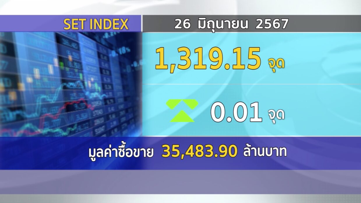 กทม. 26 มิ.ย.- SET ปิดวันนี้ที่ 1,319.15 จุด เพิ่มขึ้น 0.01 จุด (+0.00%) มูลค่าซื้อขาย 35,483.90 ล้านบาท