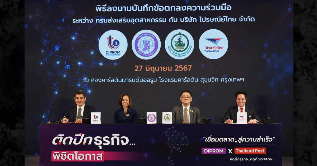นายภาสกร ชัยรัตน์ อธิบดีกรมส่งเสริมอุตสาหกรรม เปิดเผยว่ากรมส่งเสริมอุตสาหกรรม หรือ ดีพร้อม มีทิศทางการทำงานที่สอดรับกับการเปลี่ยนแปลงของโลก ตามนโยบาย “RESHAPE THE FUTURE : โลกเปลี่ยน อุตสาหกรรมปรับ พร้อมรับอนาคต” ภายใต้แนวคิด “ชุมชนเปลี่ยน” ผ่านการบูรณาการเครือข่ายความร่วมมือ (DIPROM CONNECTION) กับบริษัท ไปรษณีย์ไทย จำกัด เพื่อพัฒนาศักยภาพและสร้างโอกาสทางการตลาดในการยกระดับขีดความสามารถวิสาหกิจไทยให้มีความยั่งยืน ผ่านการเสริมสร้างองค์ความรู้ในด้านการพัฒนาผลิตภัณฑ์ กระบวนการผลิต มาตรฐาน และออกแบบบรรจุภัณฑ์ให้ทันสมัยสอดรับกับเทรนด์โลก รวมถึงมีการแลกเปลี่ยนองค์ความรู้ในการจัดเก็บสินค้า และระบบคลังสินค้า ตลอดจนได้มอบสิทธิประโยชน์อัตราพิเศษในการขนส่งสินค้าจากผู้ผลิตไปยังผู้รับปลายทางอย่างมีคุณภาพ พร้อมขยายช่องทางการจัดจำหน่ายสินค้าผ่านช่องทางออนไลน์บนเว็บไซต์ ThailandpostMart และออฟไลน์ ณ ที่ทำการไปรษณีย์และเครือข่ายพันธมิตรกว่า 50,000 แห่งทั่วประเทศ นอกจากนี้ ยังมีการส่งเสริมความร่วมมือในการบริหารจัดการวัสดุเหลือใช้ อาทิ กล่อง ซอง ขวดน้ำ ถุงพลาสติก และขยะอิเล็กทรอนิกส์ โดยได้เตรียมจุดรับวัสดุเหลือใช้เหล่านี้ให้แก่สถานประกอบการ ภายใต้โครงการ Green Hub เพื่อลดขยะในสถานประกอบการ สนับสนุนเศรษฐกิจหมุนเวียนตามหลักการ Circular Economy และขับเคลื่อนเศรษฐกิจไทยให้สามารถแข่งขันได้อย่างยั่งยืน ทั้งนี้ ความร่วมมือที่เกิดขึ้นระหว่างสองหน่วยงานจะช่วยสร้างความได้เปรียบทางการแข่งขัน และส่งเสริมการเติบโตของผู้ประกอบการ SMEs และวิสาหกิจชุมชนได้อย่างยั่งยืน ซึ่งคาดว่าจะสามารถสร้างโอกาสทางการตลาดผ่านแพลตฟอร์มต่าง ๆ ได้กว่า 200 ล้านบาท