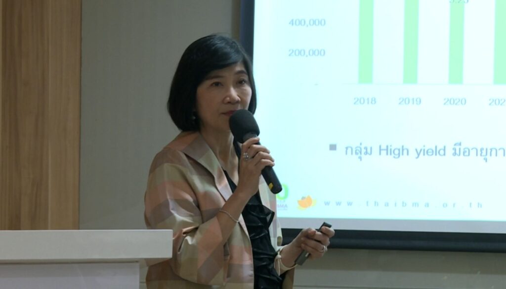 ดร.สมจินต์ ศรไพศาล กรรมการผู้จัดการ สมาคมตลาดตราสารหนี้ไทย (ThaiBMA) แถลงภาวะตลาดตราสารหนี้ไทย ไตรมาส 2 ปี2567 โดย ณ สิ้นไตรมาส 2 ตลาดตราสารหนี้ไทยมีมูลค่าคงค้างเท่ากับ 17 ล้านล้านบาท ขยายตัว 2.7% จากสิ้นปีที่แล้ว จากการเพิ่มขึ้นของตราสารหนี้ที่ออกโดยรัฐบาลเป็นหลัก ในส่วนของการออกตราสารหนี้ภาคเอกชนระยะยาว (หุ้นกู้ระยะยาว) มีมูลค่า 494,371 ล้านบาท โดย 95% เป็นการออกของหุ้นกู้ในกลุ่ม Investment grade ส่วนอีก 5% เป็นกลุ่ม High yield ซึ่งมีข้อสังเกตเพิ่มเติมว่าการออกของกลุ่มนี้มีลักษณะเป็นหุ้นกู้มีประกันในสัดส่วนที่สูงถึง 81% สำหรับในครึ่งแรกปี 2567 สูงขึ้นจาก 48% ในปี 2566 และมีอายุการออกเฉลี่ยที่ 2.2 ปี ลดลงจาก 2.5 ปี ในปี 2566