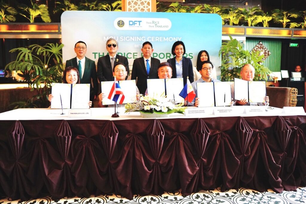 นายรณรงค์ พูลพิพัฒน์ อธิบดีกรมการค้าต่างประเทศกล่าวว่าในปี 2567 ฟิลิปปินส์มีความต้องการนำเข้าข้าวสูงถึงประมาณ 4.1 ล้านตัน กรมการค้าต่างประเทศ จึงได้จัดคณะผู้แทนการค้าข้าวไทยโดยภาคเอกชน นำโดย ร.ต.ท.เจริญ เหล่าธรรมทัศน์ นายกสมาคมผู้ส่งออกข้าวไทย และสมาชิกฯ ร่วมเดินทางไปฟิลิปปินส์ระหว่างวันที่ 3 – 5 กรกฎาคม 2567 เพื่อกระชับความสัมพันธ์ทางการค้าและลงนาม MOU กับผู้นำเข้าข้าวฟิลิปปินส์ จำนวน 9 ฉบับ ปริมาณรวม 130,000 ตัน คิดเป็นมูลค่ากว่า 2,800 ล้านบาท การลงนาม MOU ซื้อ-ขายข้าวแล้ว ในครั้งนี้ กรมฯ ยังได้ร่วมกับสำนักงานส่งเสริมการค้าในต่างประเทศ ณ กรุงมะนิลา เชิญผู้นำเข้า ผู้ค้าข้าว ห้าง/ร้านค้าปลีก ผู้ประกอบการค้าข้าวรายสำคัญและผู้แทนหน่วยงานภาครัฐของฟิลิปปินส์ รวมถึงสื่อและ Influencers กว่า 70 ราย เข้าร่วมกิจกรรมประชาสัมพันธ์ข้าวไทยภายใต้คอนเซป “Premium Thai Rice with Authentic Thai Food” ณ ร้าน Mango Tree Manila ซึ่งเป็นร้านที่ได้รับตรา “Thai SELECT” จากกระทรวงพาณิชย์