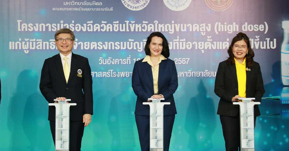 นางแพตริเซีย มงคลวนิช อธิบดีกรมบัญชีกลาง พร้อมด้วยผู้บริหารกรมบัญชีกลาง อาจารย์ นายแพทย์ไพโรจน์ บุญคงชื่น รองคณบดีคณะแพทยศาสตร์โรงพยาบาลรามาธิบดี มหาวิทยาลัยมหิดล ร่วมกันเปิดโครงการนำร่องฉีดวัคซีนไข้หวัดใหญ่ขนาดสูง (high dose) ให้แก่ ครอบครัวข้าราชการ ผู้มีสิทธิเบิกจ่ายตรงที่มีอายุตั้งแต่ 65 ปีขึ้นไป ณ โรงพยาบาลรามาธิบดี เพื่อป้องกันโรคไข้หวัดใหญ่และลดการพักรักษาตัวที่โรงพยาบาลจากปอดอักเสบในผู้สูงอายุ