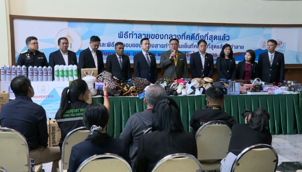 กรุงเทพฯ 16 ก.ค. – “จุลพันธ์” นำทีมกรมศุลกากร จัดพิธีทำลายของกลางละเมิดลิขสิทธิ์-เครื่องหมายการค้า บุหรี่ไฟฟ้า รวมกว่า 1 ล้านชิ้น และส่งมอบของกลางสารทำความเย็นที่คดีถึงที่สุดแล้ว 4,500 ชิ้น ไปทำลายรวมมูลค่ากว่า 39 ล้านบาท