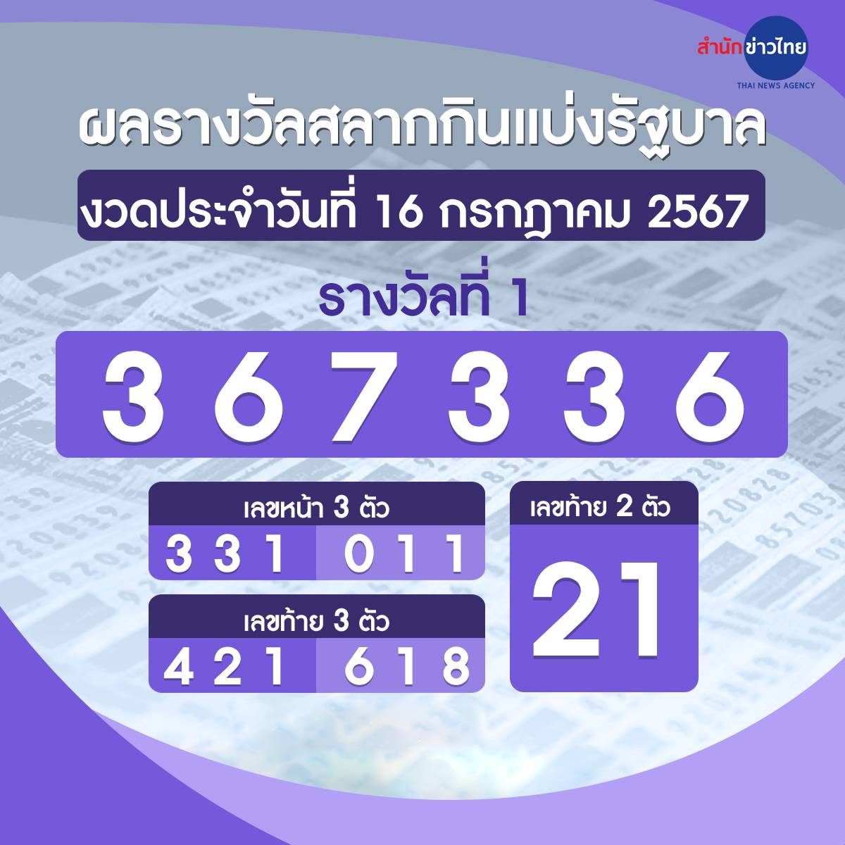 รางวัลเลขท้าย 2 ตัว ได้แก่ 21