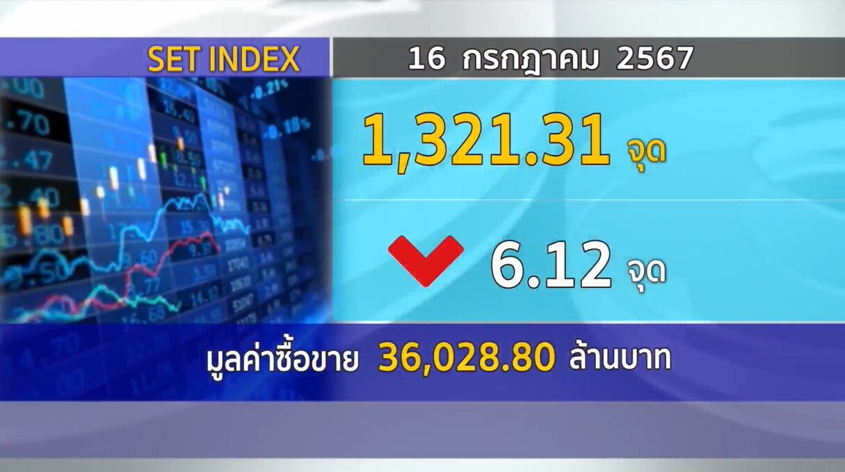 กทม. 16 ก.ค.-SET ปิดวันนี้ที่ 1,321.31 จุด ลดลง 6.12 จุด (-0.46%) มูลค่าการซื้อขาย 36,070.72 ล้านบาท
