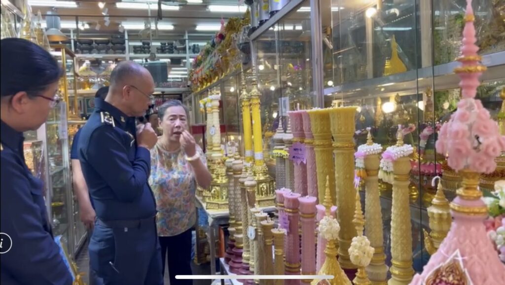 นายอุดม ศรีสมทรง รองอธิบดีกรมการค้าภายใน เปิดเผยว่า ตามนโยบายของนายภูมิธรรม เวชยชัย รองนายกรัฐมนตรีว่าการกระทรวงพาณิชย์ ที่มอบหมายให้กรมการค้าภายใน ตรวจสอบรักษาความเป็นธรรมทางการค้า อธิบดีกรมการค้าภายในจึงได้มอบหมายให้เจ้าหน้าที่ออกตรวจสอบสถานการณ์ราคาสินค้าอย่างต่อเนื่องทั่วประเทศ รวมทั้งขอความร่วมมือพาณิชย์จังหวัด ในการตรวจสอบสินค้าที่เป็นปัจจัยพื้นฐานและสินค้าที่ใช้ในช่วงเทศกาลวันสำคัญทางพุทธศาสนา เพื่อรักษาความเป็นธรรมทางการค้า ป้องกันไม่ให้ผู้ค้าฉวยโอกาสปรับขึ้นราคาสินค้าโดยไม่มีเหตุผลอันสมควร กรมการค้าภายใน และสำนักงานคณะกรรมการคุ้มครองผู้บริโภค พร้อมทั้งเจ้าหน้าที่สำนักงานเขตพระนคร จึงได้บูรณาการร่วมกันลงพื้นที่ตรวจสอบผู้ผลิตและจำหน่ายชุดสังฆทานและชุดไทยธรรม ในช่วงวันสำคัญทางพุทธศาสนา วันอาสาฬหบูชา และวันเข้าพรรษา ณ บริเวณแยกสี่กั๊กเสาชิงช้า เขตพระนคร กรุงเทพมหานคร ซึ่งเป็นสถานที่จำหน่ายสินค้า และเป็นผู้สั่งผลิตสินค้าชุดสังฆทาน ชุดไทยธรรม และเทียนพรรษา ที่เป็นร้านค้าชั้นนำในเขตกรุงเทพ