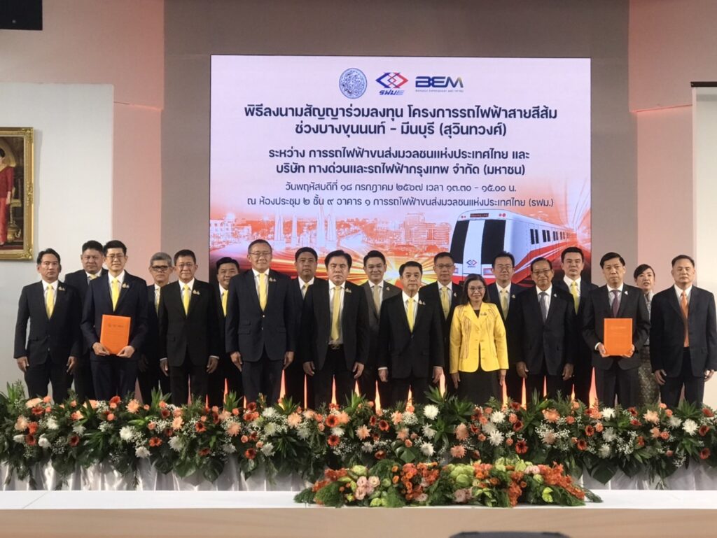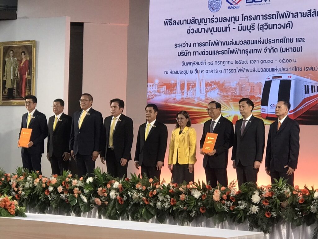 สำหรับโครงการรถไฟฟ้าสายสีส้ม ช่วงบางขุนนนท์-มีนบุรี (สุวินทวงศ์) มีแนวเส้นทางเชื่อมระหว่างกรุงเทพมหานครทิศตะวันออกและทิศตะวันตก ระยะทาง 35.9 กิโลเมตร แบ่งเป็นส่วนตะวันออก (ช่วงศูนย์วัฒนธรรม แห่งประเทศไทย – มีนบุรี (สุวินทวงศ์)) ระยะทาง 22.5 กิโลเมตร จำนวน 17 สถานี (สถานีใต้ดิน 10 สถานี และสถานียกระดับ 7 สถานี) และส่วนตะวันตก (ช่วงบางขุนนนท์ – ศูนย์วัฒนธรรมแห่งประเทศไทย) ระยะทาง 13.4 กิโลเมตร จำนวน 11 สถานี (สถานีใต้ดินตลอดสาย)ซึ่งหลังจากการลงนามก่อสร้างรถไฟฟ้าสายสีส้มแล้ว ต่อไปจะมีการก่อสร้างรถไฟฟ้าสายสีเทา ขึ้นมาอีกหนึ่งสายซึ่งทางกรุงเทพมหานคร ต้องการโอนมาให้ รฟม.เป็นผู้ดำเนินการ.-513-สำนักข่าวไทย