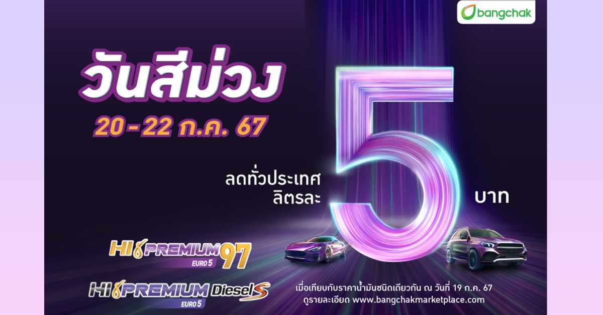 กรุงเทพฯ 19 ก.ค.- บริษัท บางจาก คอร์ปอเรชั่น จำกัด (มหาชน) จัดโปรโมชันแรงแห่งปี “วันสีม่วง” ลดราคาน้ำมันบางจากกลุ่มไฮพรีเมียม ได้แก่ บางจากไฮพรีเมียม 97 และบางจากไฮพรีเมียม ดีเซล S ทุกลิตร ลิตรละ 5 บาท ไม่มีขั้นต่ำ ตั้งแต่วัน 20 -22 ก.ค.67 ที่สถานีบริการน้ำมันบางจากและสถานีบริการน้ำมันเอสโซ่เดิมทั่วประเทศที่ร่วมรายการ ดูรายละเอียดได้ที่ www.bangchakmarketplace.com