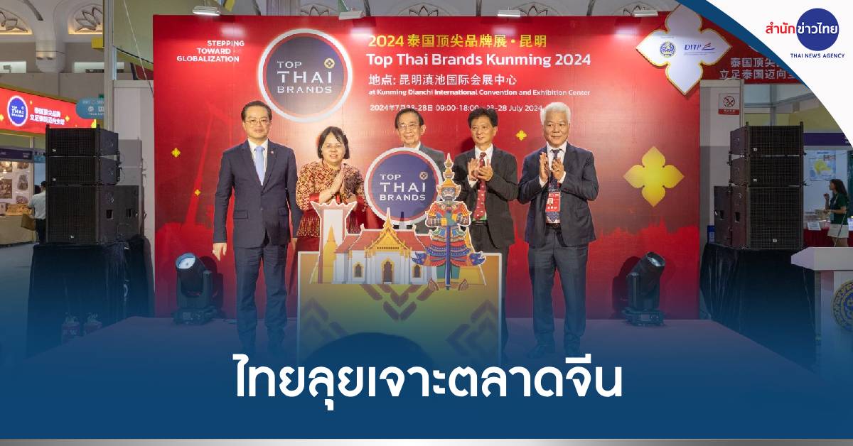 ทั้งนี้ Top Thai Brands ถือเป็นงานแสดงสินค้าสำคัญของกรมส่งเสริมการค้าระหว่างประเทศที่มุ่งเน้นคัดเลือกผู้ประกอบการไทยที่มีตราสินค้าเป็นของตนเองให้มีโอกาสออกไปขยายธุรกิจในต่างประเทศ ซึ่งการจัดงาน TTB Kunming 2024 ผู้ประกอบการไทยได้นำสินค้าหลากหลายเข้าร่วมงาน อาทิ เครื่องแกง ผักผลไม้อบแห้ง ข้าวตังธัญพืช คุกกี้กรอบรสชาดต่างๆ และกัมมี่เยลลี่ ก๋วยจั๊บญวนสำเร็จรูป ก๋วยเตี๋ยวเรือสำเร็จรูป เนื้อปูม้าพาสเจอร์ไรส์ ปลากรอบ ข้าวเกรียบปลา ยาดมสมุนไพร น้ำมันนวดสมุนไพร ผลิตภัณฑ์กันแดดและบำรุงผิว ผลิตภัณฑ์บำรุงเส้นผม เครื่องประดับเงิน ทอง และไข่มุก เสื้อผ้าฝ้ายแฮนด์เมด ผลิตภัณฑ์มัดย้อม แจ็คเก็ตผ้าไทย หมอนยางพารา ผลิตภัณฑ์ภาชนะไม้ที่ใช้ในครัวเรือน อโรมาปรับอากาศและกาจัดกลิ่นในห้อง รถยนต์ และรองเท้า