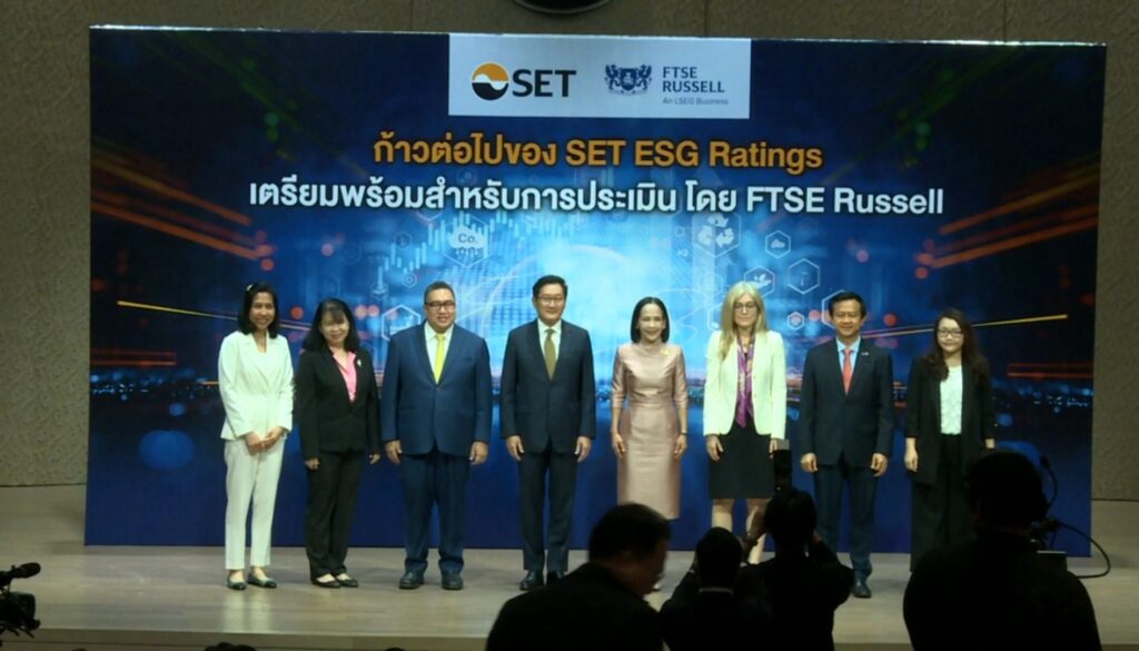 ตลาดหลักทรัพย์แห่งประเทศไทย ร่วมกับตลาดหลักทรัพย์ลอนดอน (London Stock Exchange Group) โดย FTSE Russell ผู้ประเมิน ESG ระดับโลก มุ่งพัฒนาศักยภาพตลาดทุนไทย เดินหน้ายกระดับการประเมินความยั่งยืน SET ESG Ratings สู่มาตรฐานสากล เน้นการประเมินจากข้อมูลที่บริษัทจดทะเบียน (บจ.) เปิดเผยสู่สาธารณะ (public disclosures) ซึ่งเป็น Methodology ที่ใช้ประเมินกว่า 8,000 หลักทรัพย์ทั่วโลกสร้างความเชื่อมั่นพร้อมดึงดูดความสนใจผู้ลงทุน และสามารถเปรียบเทียบผลประเมินกับบริษัททั้งในและต่างประเทศด้วยมาตรฐานเดียวกัน โดยจะเตรียมความพร้อม บจ. และเริ่มโครงการประเมินนำร่องในปี 2567-2568 ก่อนการประเมินและประกาศผลคะแนน ESG สู่สาธารณะตั้งแต่ปี 2569 เป็นต้นไป