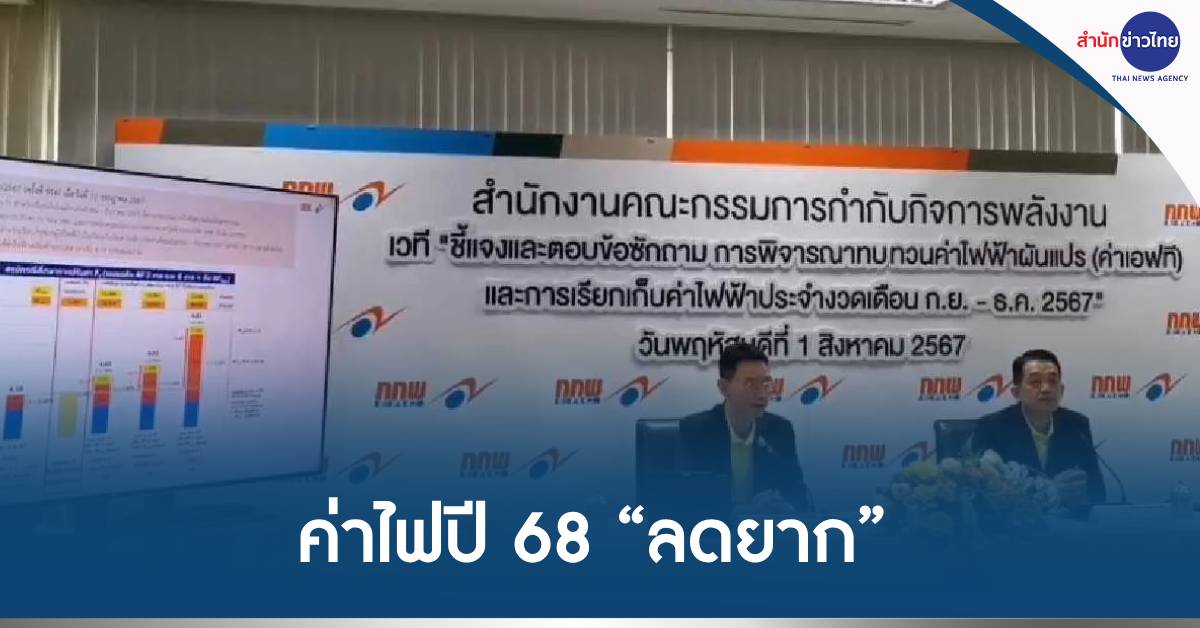 นายพูลพัฒน์ ลีสมบัติไพบูลย์ เลขาธิการสำนักงานคณะกรรมการกำกับกิจการพลังงาน (สำนักงาน กกพ.) ในฐานะโฆษกคณะกรรมการกำกับกิจการพลังงาน (กกพ.) เปิดเผยว่า กกพ.มีมติตรึงราคาค่าไฟงวด ก.ย.-ธ.ค. 67 ที่ 4.18 บาทต่อหน่วยเท่าเดิม โดยค่าเอฟทีอยู่ที่ 39.72 สตางค์ ตามติ ครม.ที่ช่วยเหลือค่าครองชีพของประชาชน ซึ่งทางการไฟฟ้าฝ่ายผลิตแห่งประเทศไทย (กฟผ.) และ บมจ.ปตท.ร่วมรับภาระหนี้คงค้าง (AF)ไว้ก่อน อย่างไรก็ตาม จากการตรึงค่าไฟดังกล่าว กฟผ.จะได้รับการคืนหนี้ราว 3,267 ล้านบาท ทำให้หนี้ AF ที่ กฟผ. รับภาระต้นทุนค่าเชื้อเพลิงและค่าซื้อไฟฟ้าแทนประชาชนตั้งแต่เดือนกันยายน 2564 – เมษายน 2567 ในช่วงสภาวะวิกฤตของราคาพลังงานที่ผ่านมา เหลือ 95,228 ล้านบาท และคงค้างหนี้ AF ก๊าซฯตามมติ ครม. 18 ก.ย.66 จำนวน 15,083.79 ล้านบาท (เป็นส่วนของ ปตท. 3,000 ล้านบาท และ กฟผ. 12,000 ล้านบาท) ยังคงเหลือค้างต่อไป รวมวงเงิน 2 ส่วนนี้ เป็นหนี้ รวม 110,312 ล้านบาท