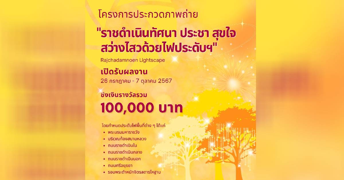 กรุงเทพฯ 3 ก.ค.-MEA ร่วมกับ สมาคมถ่ายภาพแห่งประเทศไทยฯ จัดประกวดภาพถ่ายไฟประดับ “โครงการราชดำเนินทัศนา ประชา สุขใจ สว่างไสวด้วยไฟประดับฯ” ชิงเงินรางวัลรวม 1 แสนบาท