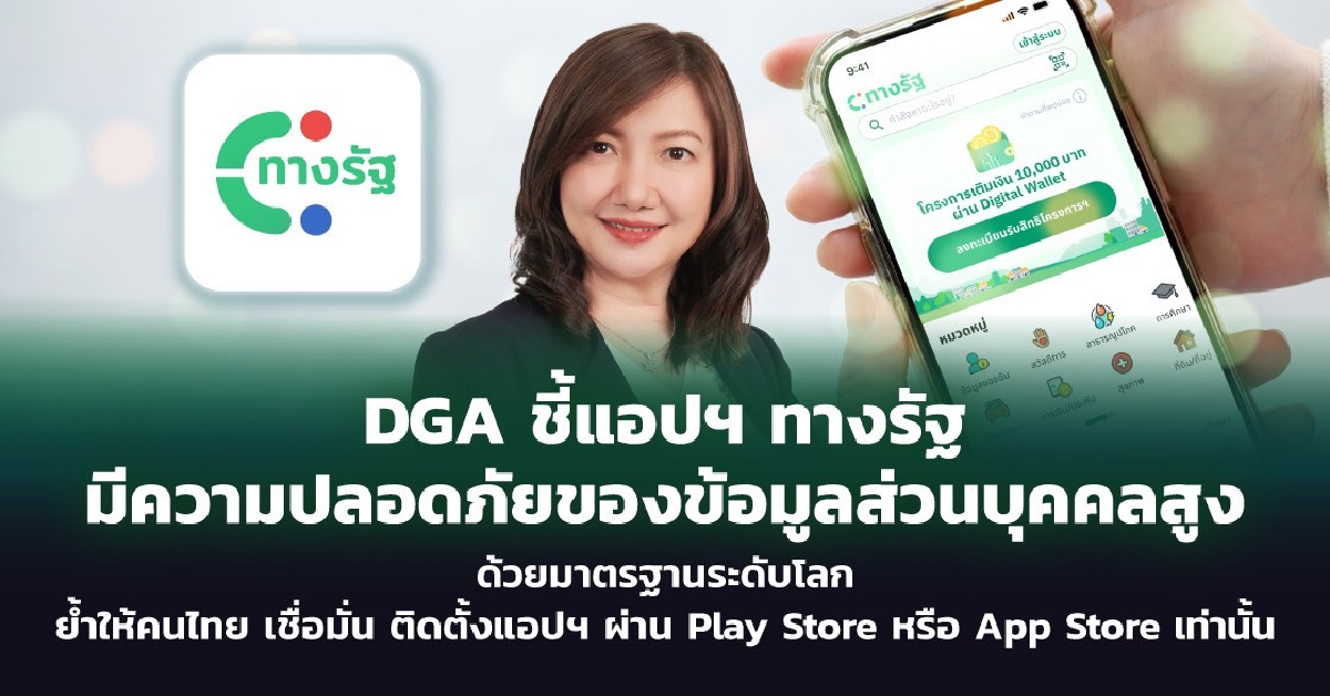 กรุงเทพฯ 4 ส.ค. – DGA ชี้แอปฯ “ทางรัฐ” มีความปลอดภัยของข้อมูลส่วนบุคคลสูงด้วยมาตรฐานระดับโลก ยันไม่เชื่อมบัญชีธนาคาร-ไม่เก็บข้อมูลบัญชีธนาคารของประชาชน ย้ำให้คนไทยเชื่อมั่น ติดตั้งแอปฯ ผ่าน App Store และ Play Store เท่านั้น