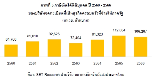 บริษัทจดทะเบียนที่เป็นธุรกิจครอบครัวมีบทบาทสำคัญต่อการพัฒนาประเทศ โดยพบว่า ในปี 2566 บริษัทกลุ่มนี้มีรายได้รวมสูงถึง 8.31 ล้านล้านบาท หรือคิดเป็น 46.4% ของผลิตภัณฑ์มวลรวมในประเทศ และบริษัทจดทะเบียนกลุ่มนี้จ่ายภาษีนิติบุคคลรวมสูงกว่า 106,287 ล้านบาท หรือคิดเป็น 14.1% ของภาษีเงินได้นิติบุคคลทั้งระบบที่กรมสรรพากรจัดเก็บในปี 2566