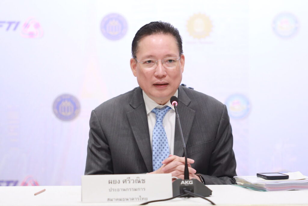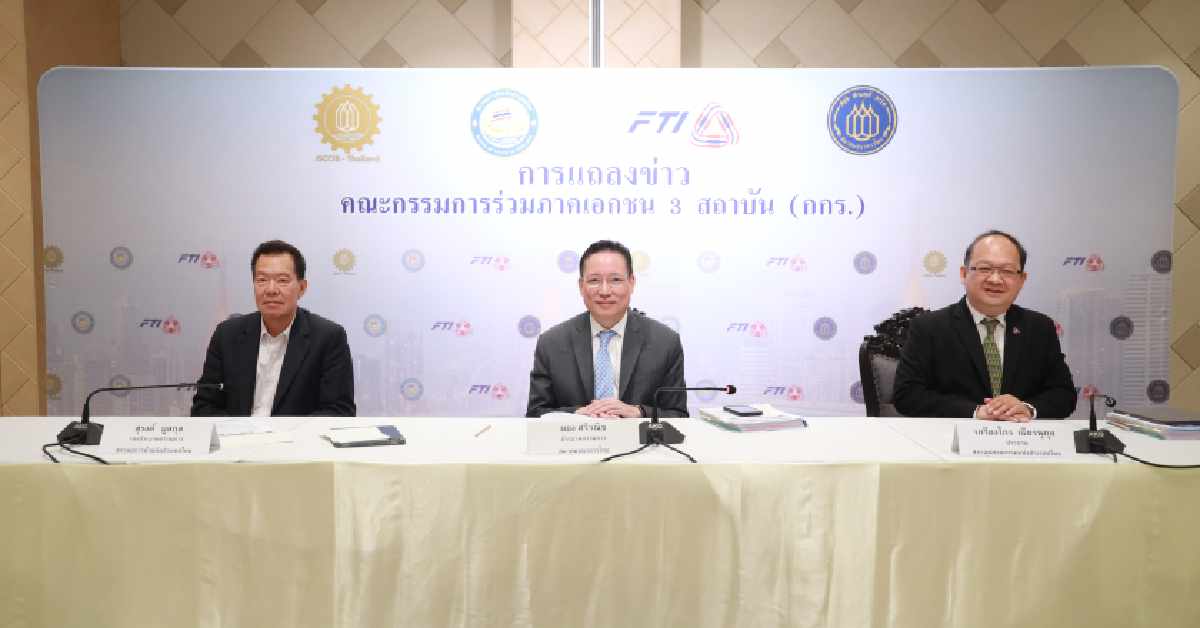 นายผยง ศรีวณิช ประธานสมาคมธนาคารไทย ในฐานะประธานการประชุมคณะกรรมการร่วมภาคเอกชน 3 สถาบัน (กกร.) นายเกรียงไกร เธียรนุกุล ประธานสภาอุตสาหกรรมแห่งประเทศไทย (ส.อ.ท.) และนายสุรงค์ บูลกุล รองประธานกรรมการสภาหอการค้าไทย ร่วมแถลงผลการประชุมคณะกรรมการร่วมภาคเอกชน 3 สถาบัน (กกร.) ประจำเดือนสิงหาคม 2567