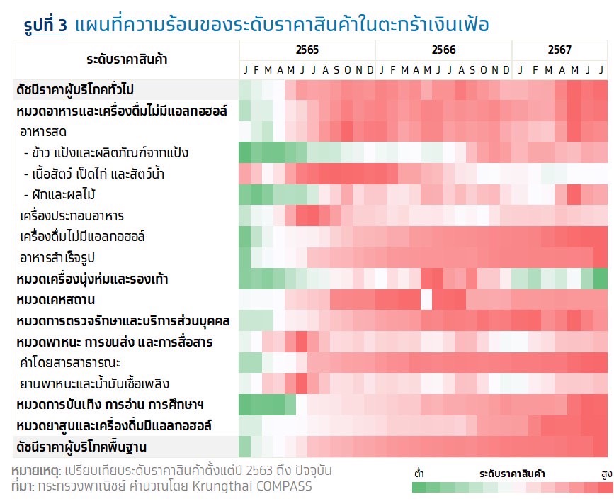 Krungthai COMPASS ประเมินว่ากำลังซื้อของผู้บริโภคยังมีแนวโน้มอ่อนแอต่อเนื่อง สะท้อนจากแนวโน้มอัตราเงินเฟ้อที่ยังอยู่ในระดับต่ำ แม้ว่าเดือน ก.ค. 2567 อัตราเงินเฟ้อจะเร่งตัวเพิ่มขึ้นเล็กน้อยมาอยู่ที่ 0.83%YoY แต่เป็นอัตราที่ต่ำกว่าขอบล่างของกรอบเป้าหมายเงินเฟ้อที่ 1% โดยมีสินค้าบางรายการที่ยังหดตัว ได้แก่ เสื้อผ้า และค่าของใช้ส่วนตัว เป็นต้น ขณะที่ระยะข้างหน้า แม้คาดว่าอัตราเงินเฟ้อจะเร่งตัวขึ้นและเข้าสู่กรอบเป้าหมายเงินเฟ้อในช่วงไตรมาสที่ 4 แต่เกิดจากผลของฐานราคาพลังงานทั้งค่ากระแสไฟฟ้าและราคาน้ำมันขายปลีกที่ต่ำในปีก่อน ขณะที่ดัชนีความเชื่อมั่นผู้บริโภคโดยกระทรวงพาณิชย์ล่าสุดปรับลดจากระดับ 52.3 ในเดือน มิ.ย. ลงสู่ 49.7 ในเดือน ก.ค. ซึ่งถือเป็นระดับไม่เชื่อมั่นครั้งแรกในรอบ 20 เดือน นับตั้งแต่เมื่อเดือน ธ.ค. 2565 ส่วนหนึ่งจากความกังวลของประชาชนต่อปัญหาค่าครองชีพ ค่าไฟฟ้า ราคาน้ำมันเชื้อเพลิง และภาระหนี้สินที่อยู่ในระดับสูง สะท้อนว่าเศรษฐกิจยังขาดแรงผลักดันด้านอุปสงค์ ซึ่งจะส่งผลให้จีดีพีของไทยในระยะข้างหน้าจะขยายตัวได้อย่างจำกัด.-516-สำนักข่าวไทย