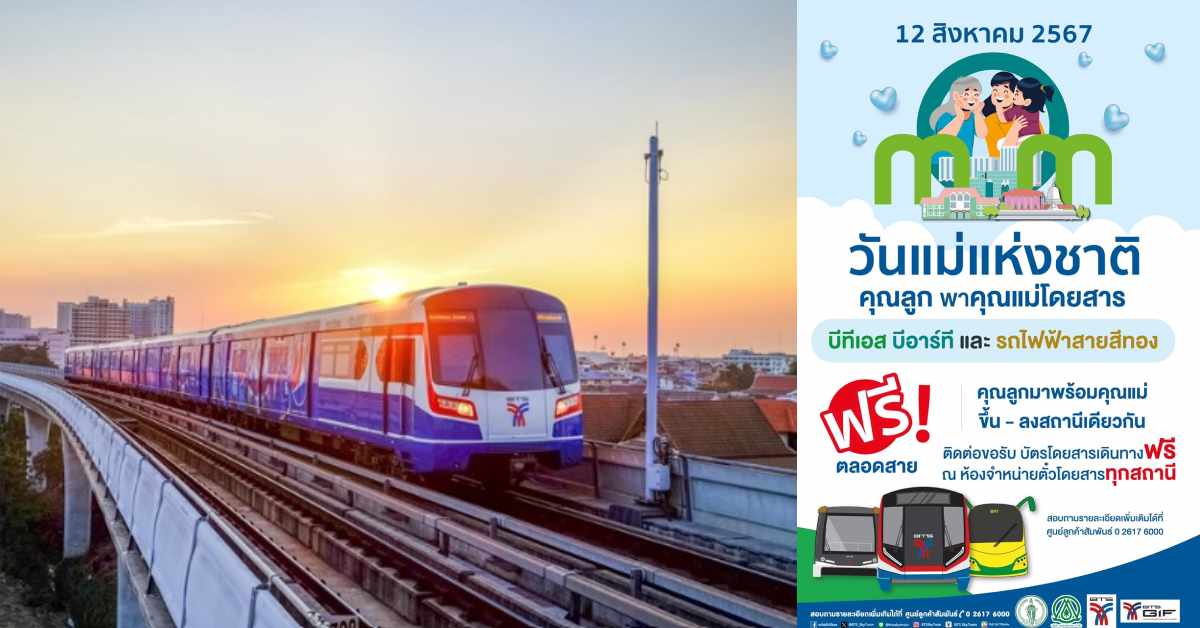 นายสุรพงษ์ เลาหะอัญญา กรรมการผู้อำนวยการใหญ่ บริษัท ระบบขนส่งมวลชนกรุงเทพ จำกัด (มหาชน) ผู้ให้บริการรถไฟฟ้าบีทีเอส กล่าวว่า เนื่องในโอกาสมหามงคลเฉลิมพระชนมพรรษา 92 พรรษา สมเด็จพระนางเจ้าสิริกิติ์ พระบรมราชินีนาถ พระบรมราชชนนีพันปีหลวง ในวันที่ 12 สิงหาคม 2567 ซึ่งถือเป็น “วันแม่แห่งชาติ” โดยลูกสามารถพาคุณแม่โดยสารรถไฟฟ้าบีทีเอสฟรี ตลอดสายทุกเส้นทาง ทั้งส่วนต่อขยายสายสุขุมวิท และสายสีลม รถไฟฟ้าสายสีทอง รวมถึงรถโดยสารด่วนพิเศษบีอาร์ที ตั้งแต่เวลา 06.00-24.00 น. โดยคุณแม่และลูกจะต้องขึ้น-ลงสถานีเดียวกัน คุณแม่สามารถขอรับบัตรโดยสารฟรี! ได้ที่ห้องจำหน่ายบัตรโดยสารทุกสถานี นอกจากนี้ บริษัทฯ ได้ยกเว้นค่าโดยสารสำหรับเด็กที่มีส่วนสูงไม่เกิน 90 ซม. อีกด้วย