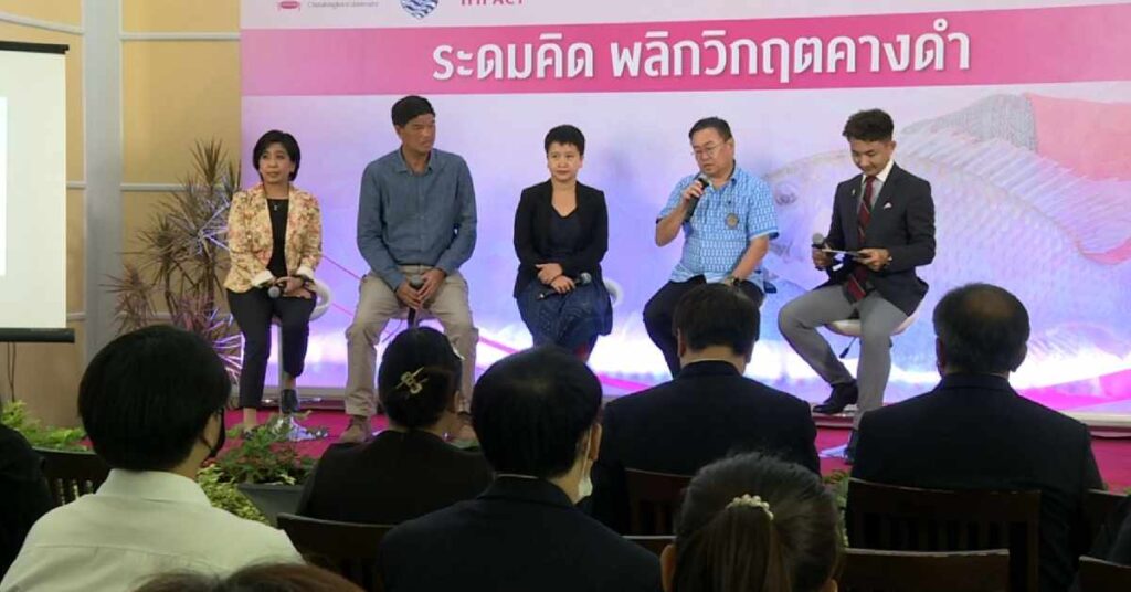 จุฬาลงกรณ์มหาวิทยาลัย โดยศูนย์สื่อสารองค์กร จุฬาฯ ร่วมกับสถาบันวิจัยทรัพยากรทางน้ำ จุฬาฯ (ARRI Chula) จัดงานเสวนาวิชาการ Chula the Impact ครั้งที่ 24 “ระดมคิด พลิกวิกฤตคางดำ” โดยเชิญนักวิชาการที่เกี่ยวข้องจากหลากหลายสถาบันและหน่วยงาน เพื่อร่วมกันหาทางออกและสร้างความเข้าใจที่ถูกต้องเกี่ยวกับการแพร่ระบาดของปลาหมอคางดำในประเทศไทย พร้อมตอบข้อสงสัยต่าง ๆ ซึ่งกำลังได้รับความสนใจจากสังคม ณ เรือนจุฬานฤมิต จุฬาลงกรณ์มหาวิทยาลัย โดยมี ศ.ดร.วิเลิศ ภูริวัชร รักษาการอธิการบดีจุฬาฯ และ ศ.ดร.วรณพ วิยกาญจน์ ผู้อำนวยการสถาบันวิจัยทรัพยากรทางน้ำ จุฬาฯ กล่าวเปิดงาน