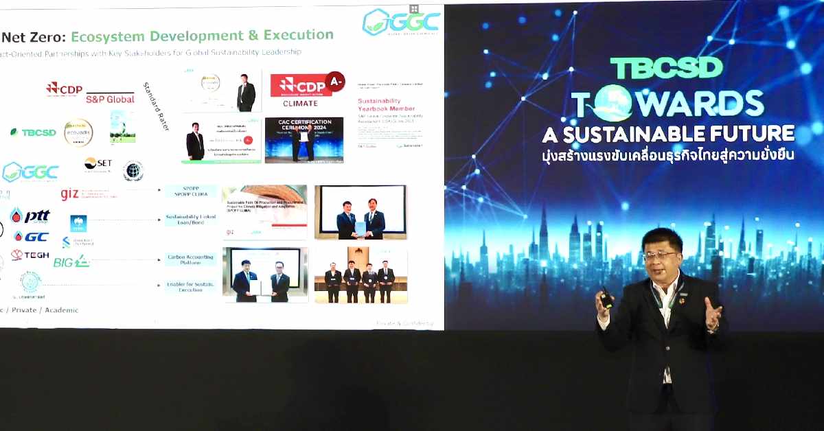 21 ส.ค. – บริษัท โกลบอลกรีนเคมิคอล จำกัด (มหาชน) หรือ “GGC” ร่วมการเสวนาในฐานะองค์กรสมาชิก ขององค์กรธุรกิจเพื่อการพัฒนาอย่างยั่งยืน (TBCSD) ในงาน TBCSD Towards a Sustainable Future มุ่งสร้างแรงขับเคลื่อนธุรกิจไทยสู่ความยั่งยืน CEO Forum: Leading Sustainable Business เพื่อแสดงถึงความท้าทายของภาคธุรกิจปิโตรเคมีและเคมีภัณฑ์ในยุคเปลี่ยนผ่านด้านพลังงาน และบทบาทของธุรกิจเชื้อเพลิงและเคมีภัณฑ์ชีวภาพซึ่งเป็นส่วนสำคัญในการผลักดันภาคธุรกิจปิโตรเคมีและเคมีภัณฑ์ในการมุ่งสู่การเป็นธุรกิจคาร์บอนต่ำเพื่อความยั่งยืนตลอดทั้งห่วงโซ่อุปทาน