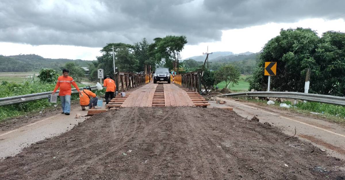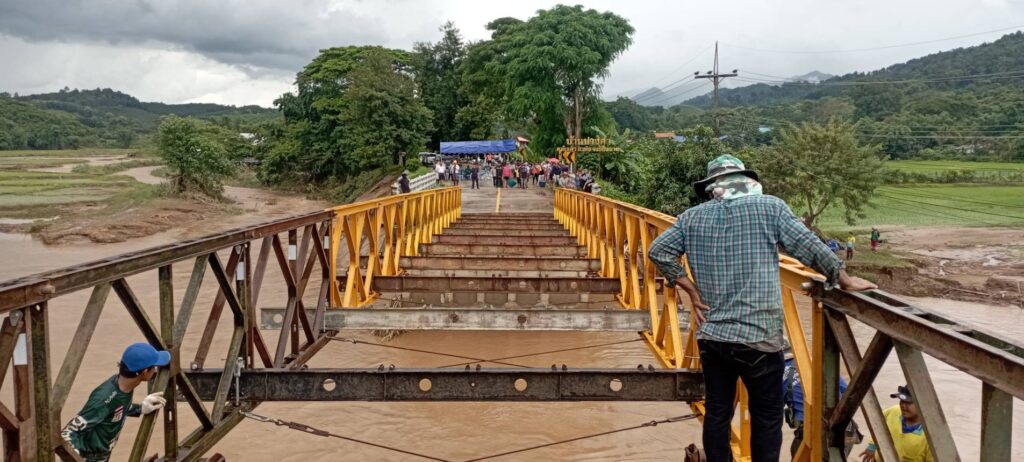 โดยเจ้าหน้าที่ได้เร่งเข้าพื้นที่เพื่อติดตั้งสะพานยาว 30 เมตร ตั้งแต่วันที่ 23 สิงหาคมที่ผ่านมา และสามารถเปิดให้ประชาชนสัญจรได้แล้วตั้งแต่ช่วงบ่ายวานนี้. -สำนักข่าวไทย