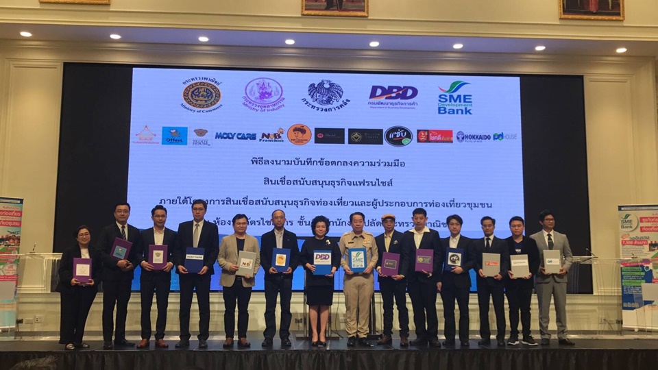 ได้แก่ กรมพัฒนาธุรกิจการค้า กระทรวงพาณิชย์ เอสเอ็มอีแบงก์และธุรกิจแฟรนไชส์ เพื่อพัฒนาศักยภาพเอสเอ็มอี ไทย ใน ‘ธุรกิจแฟรนไชส์’ ให้สามารถเข้าถึงเงินทุนเพื่อใช้หมุนเวียนในกิจการไม่ว่าจะเป็นการต่อยอดธุรกิจ