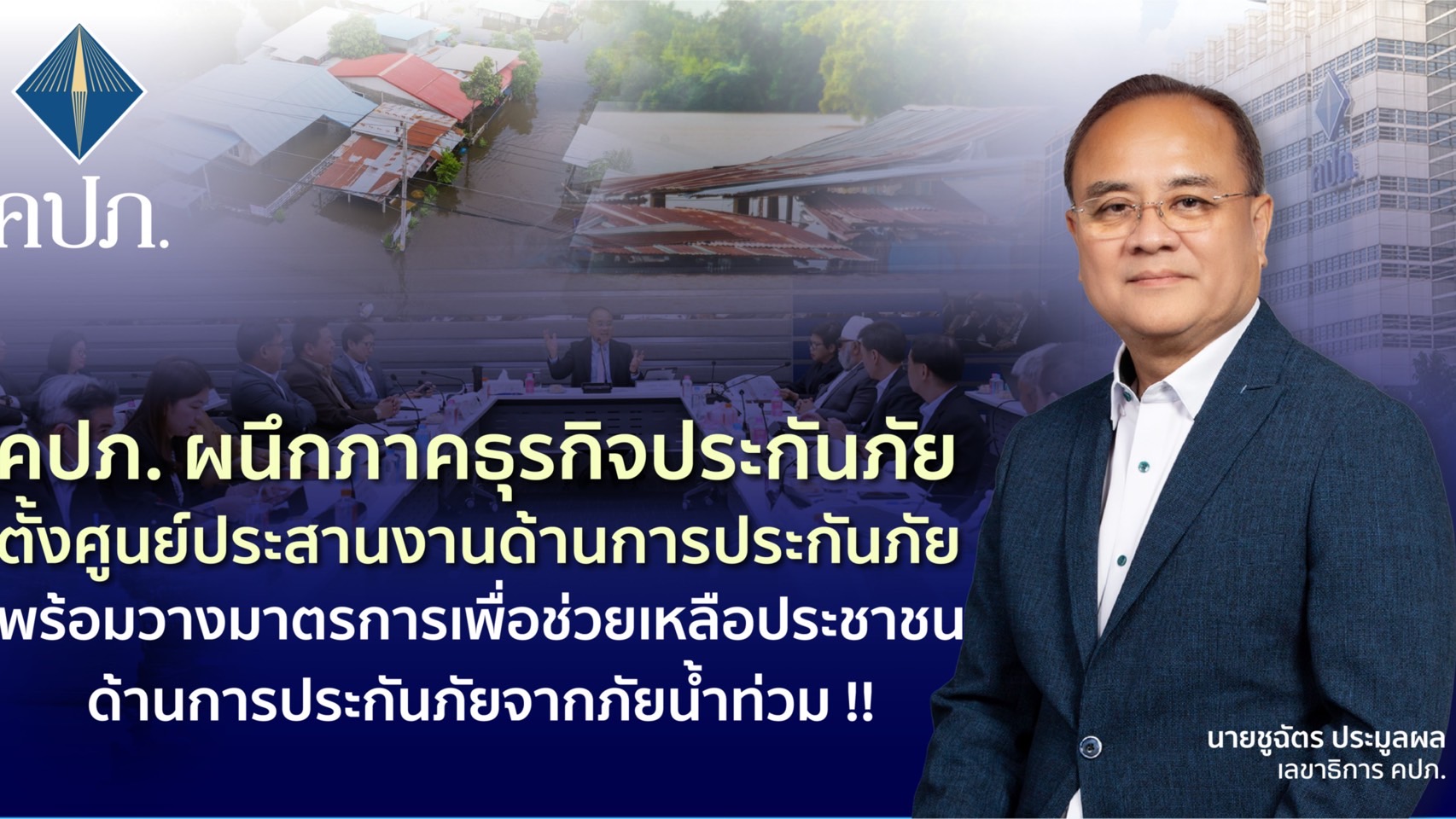 กรุงเทพฯ 2 ก.ย.-คปภ. จับมือภาคธุรกิจประกันภัย ตั้งศูนย์เคลมประกันภัย ออกมาตรการช่วยเหลือภัยน้ำท่วม