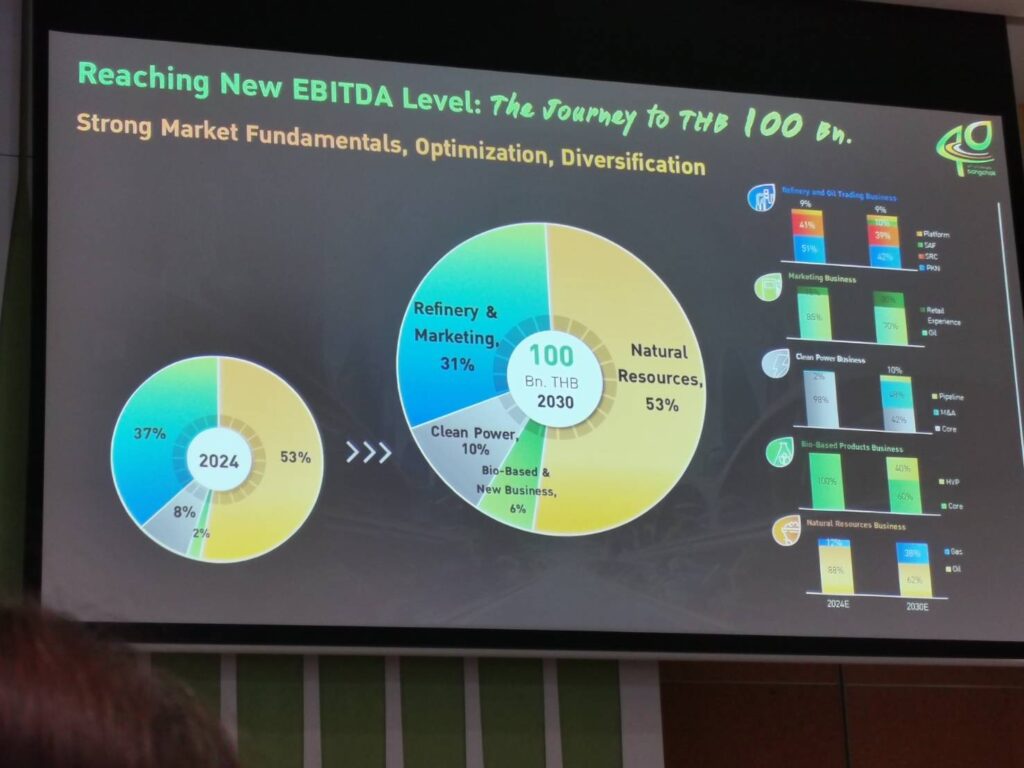 1.กลุ่มโรงกลั่นและการค้าน้ำมัน (โรงกลั่นพระโขนงและโรงกลั่นศรีราชา) คาดจะมีอัตราการใช้กำลังการกลั่นรวมเพิ่มเป็น 280,000 บาร์เรลต่อวันในปี 68 จากกำลังการกลั่นติดตั้งรวม 294,000 บาร์เรลต่อวัน มุ่งเพิ่มประสิทธิภาพและลดค่าใช้จ่ายในการดำเนินงานเพื่อเพิ่มค่าการกลั่น (GRM) นำเสนอผลิตภัณฑ์ที่หลากหลายเพื่อตอบสนองความต้องการของตลาด รวมถึงการขยายการผลิตผลิตภัณฑ์เฉพาะทางที่มีมูลค่าสูง เช่น Unconverted Oil และขี้ผึ้ง