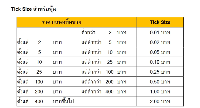 2.2 ปรับปรุงช่วงราคา (Tick Size) ในการเสนอซื้อขายหน่วยลงทุนของ VAYU1 ให้เป็นขั้นบันไดเช่นเดียวกับหุ้น