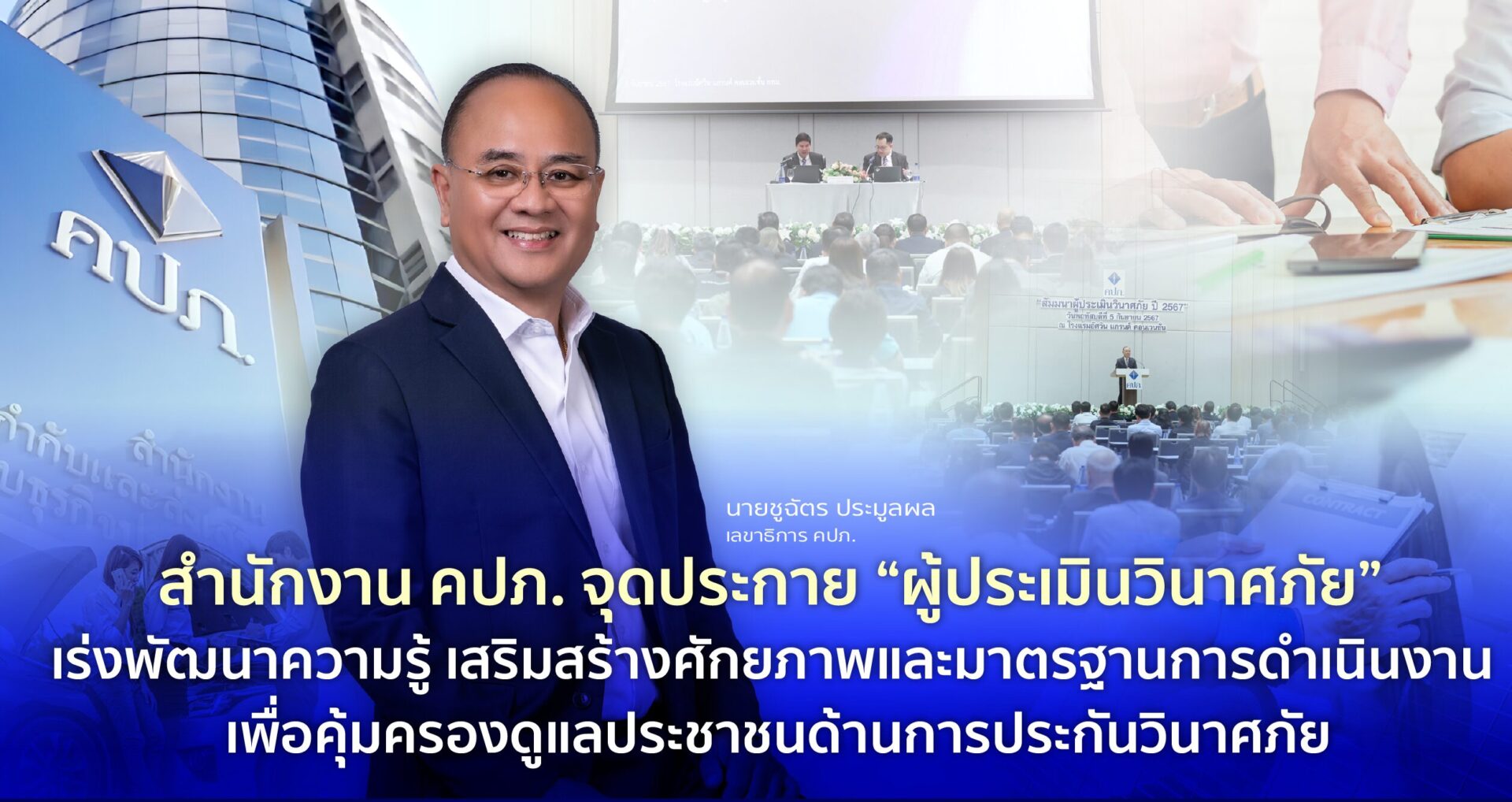 นายชูฉัตร ประมูลผล เลขาธิการคณะกรรมการกำกับและส่งเสริมการประกอบธุรกิจประกันภัย (เลขาธิการ คปภ.) เป็นประธานเปิด “งานสัมมนาผู้ประเมินวินาศภัย ปี 2567” เพื่อสร้างความรู้ความเข้าใจเกี่ยวกับกฎหมายคุ้มครองข้อมูลส่วนบุคคลของผู้ประเมินวินาศภัย การให้บริการออกใบอนุญาตผู้ประเมินวินาศภัยทางอิเล็กทรอนิกส์(e-licensing) การสร้างความเข้าใจในการปฏิบัติตามกฎหมายและกฎระเบียบที่เกี่ยวข้องกับการดำเนินงานของผู้ประเมินวินาศภัย รวมถึงภาพรวม แนวโน้ม และสถิติการประเมินวินาศภัยในปัจจุบัน