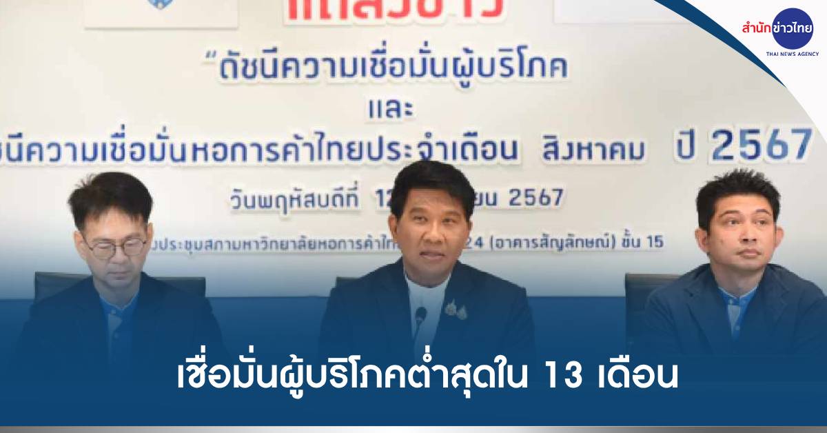 ศูนย์พยากรณ์เศรษฐกิจและธุรกิจ มหาวิทยาลัยหอการค้าไทย เปิดเผยผลการสำรวจดัชนีความเชื่อมั่นของผู้บริโภคประจำเดือนสิงหาคม 2567 พบว่าดัชนีความเชื่อมั่นของผู้บริโภคปรับตัวลดลงต่อเนื่องเป็นเดือนที่ 6 และอยู่ในระดับต่ำสุดในรอบ 13 เดือน นับตั้งแต่เดือนสิงหาคม 2566 เป็นต้นมา เนื่องจากผู้บริโภคมีความกังวลเกี่ยวกับภาวะเศรษฐกิจไทยที่ยังคงชะลอตัวลงและฟื้นตัวช้า เพราะยังไม่เห็นมาตรการกระตุ้นเศรษฐกิจที่ชัดเจนของรัฐบาลใหม่ ประกอบกับราคาพลังงานปรับตัวสูงขึ้น และผู้บริโภคยังคงกังวลเกี่ยวกับสถานการณ์เศรษฐกิจโลกชะลอตัว สงครามในตะวันออกกลางและสงครามระหว่างรัสเซียกับยูเครนที่ยังคงยืดเยื้ออาจเป็นปัจจัยที่เพิ่มแรงกดดันของการฟื้นตัวล่าช้าของเศรษฐกิจไทย