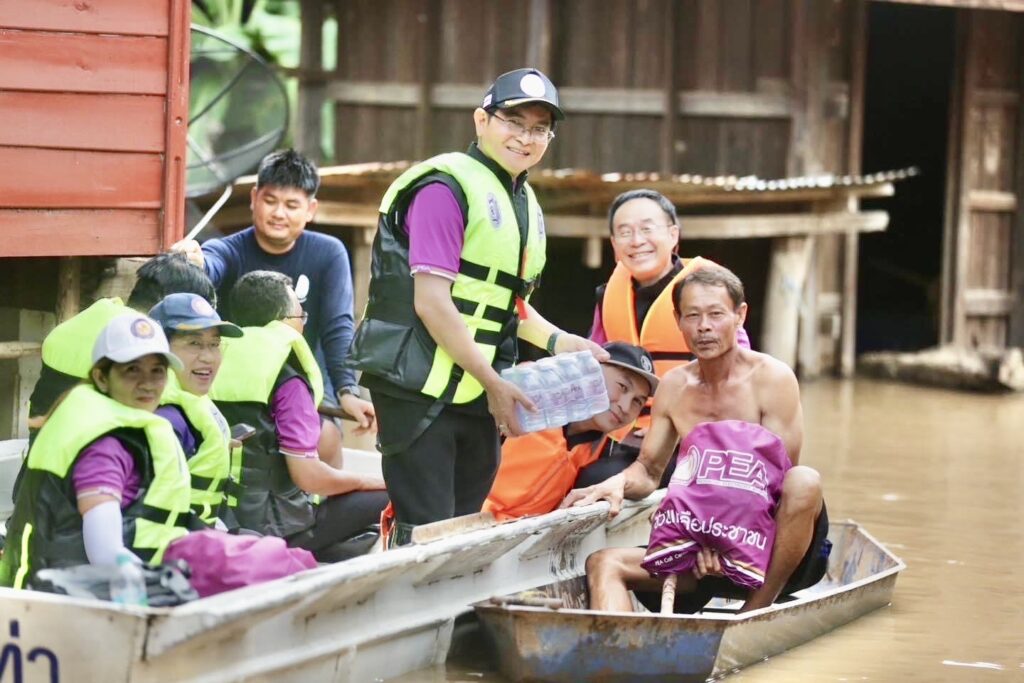 ปี 2567 PEA สนับสนุนถุงยังชีพมากกว่า 5,000 ชุด น้ำดื่มกว่า 10,000 ขวด และยังส่งไปสนับสนุนในพื้นที่ประสบอุทกภัยอย่างต่อเนื่อง รวมถึงการบรรเทาความเดือดร้อนให้ประชาชน โดยจำเป็นต้องงดจ่ายกระแสไฟฟ้าในบางพื้นที่ สำหรับพื้นที่น้ำลดในระดับที่ปลอดภัยต่อการจ่ายกระแสไฟฟ้า PEA เร่งจ่ายกระแสไฟฟ้ากลับคืนสู่ภาวะปกติโดยเร็ว และจัดกิจกรรมฟื้นฟูหลังน้ำลด สนับสนุนให้ชุมชนใช้ไฟฟ้าอย่างปลอดภัย โดยตรวจสอบและปรับปรุงระบบไฟฟ้าภายในครัวเรือน ปรับปรุง เปลี่ยนอุปกรณ์ไฟฟ้าในบ้านเรือนประชาชนที่ประสบภัยน้ำท่วมตามโครงการชุมชนปลอดภัย ใช้ไฟ PEA พร้อมระดมทีมเข้าฟื้นฟู แก้ไขซ่อมแซมระบบไฟฟ้า เพื่อบรรเทาความเดือดร้อนผู้ที่ได้รับผลกระทบจากอุทกภัย และเพิ่มความปลอดภัยในการใช้ไฟฟ้า โดยช่างไฟฟ้าจากโครงการ 1 ตำบล 1 ช่างไฟฟ้า และช่างไฟฟ้าตามแผนงานขยายผลสู่โครงการ 1 หมู่บ้าน 1 ช่างไฟฟ้า